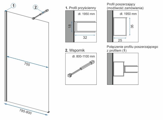REA Suihkuseinä AERO 80 kromi, 1,8X80X195CM