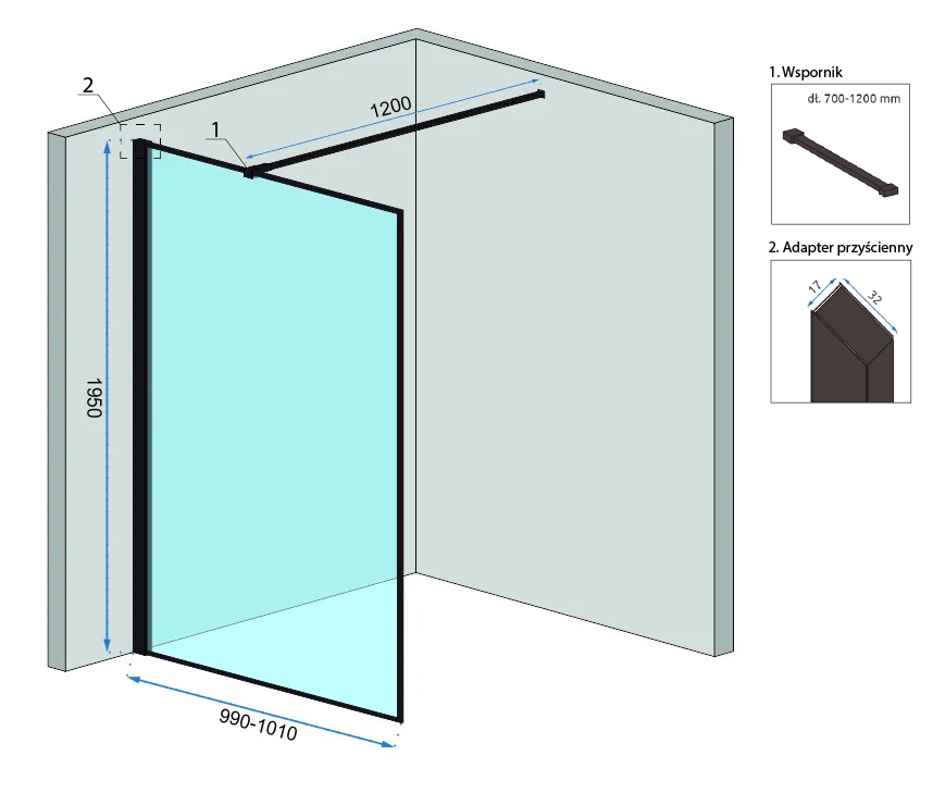 REA Suihkuseinä BLER 100 musta, 1,7X101X195CM