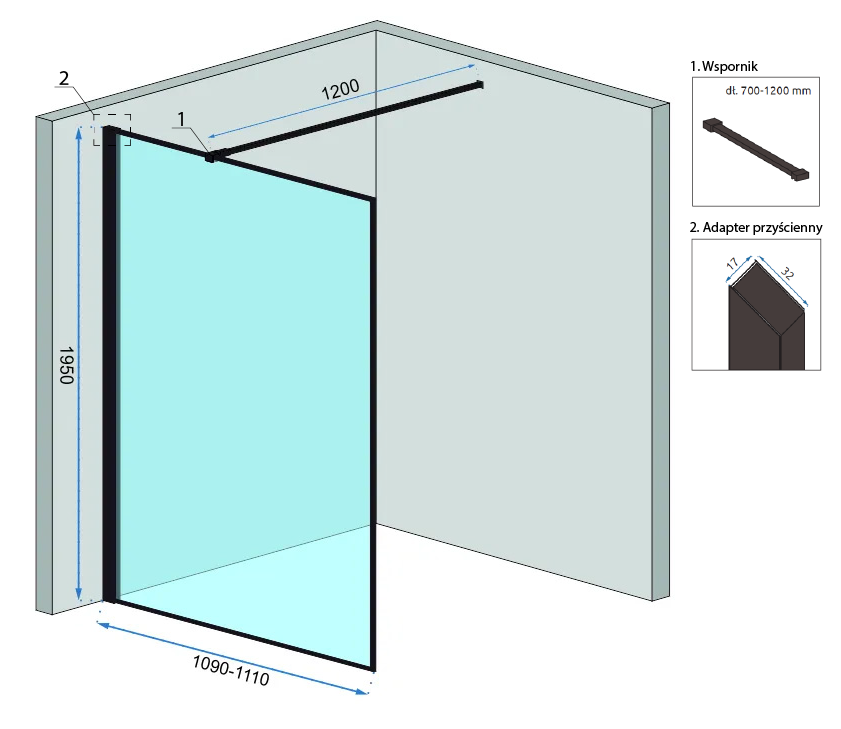 REA Suihkuseinä BLER 110 musta, 1,7X111X195CM