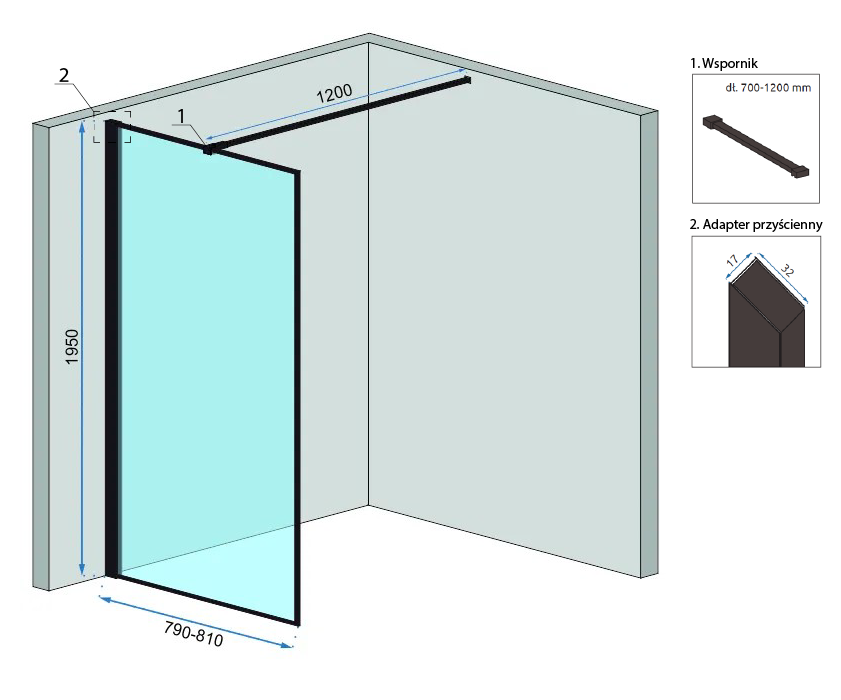 REA Suihkuseinä BLER 80 musta, 1,7X81X195CM
