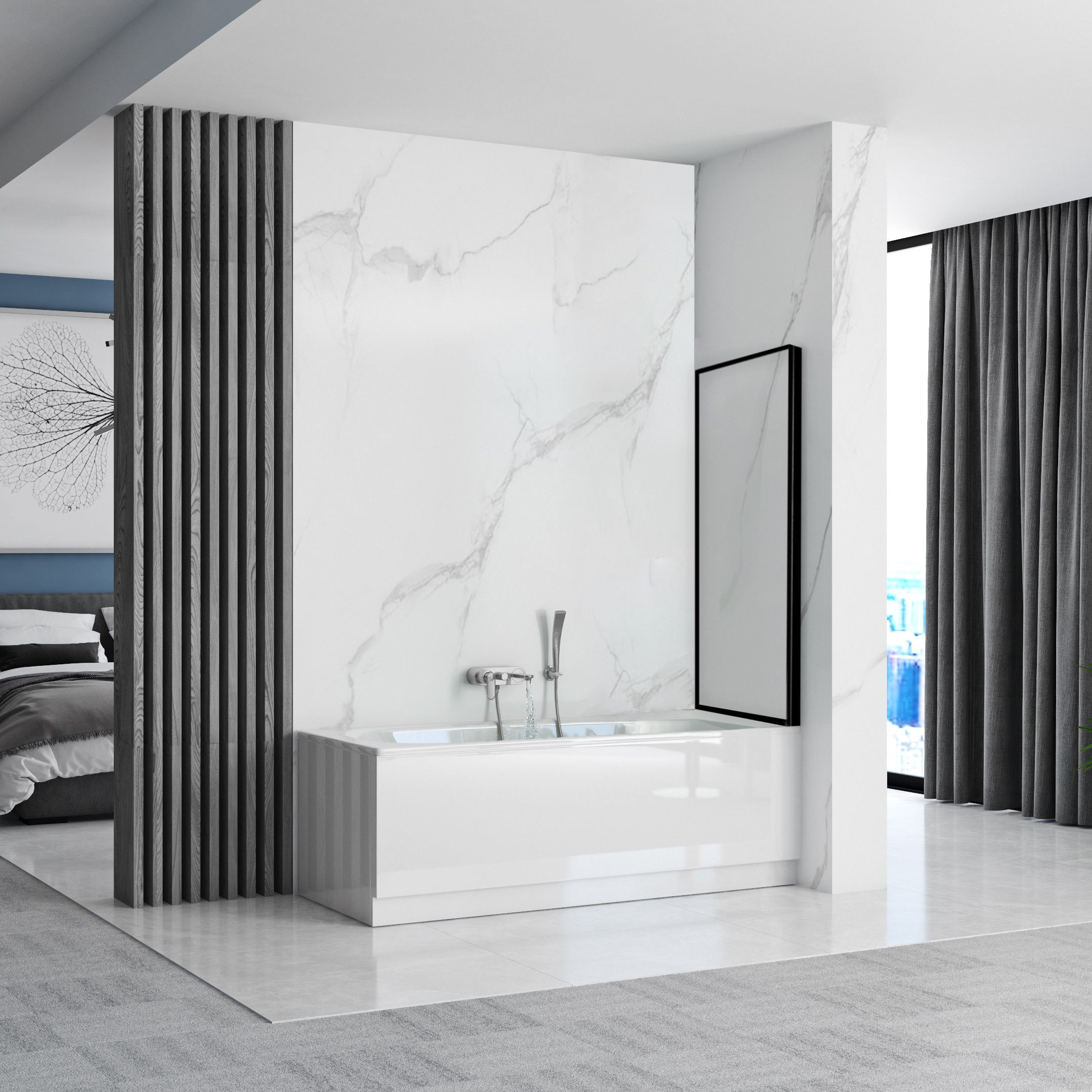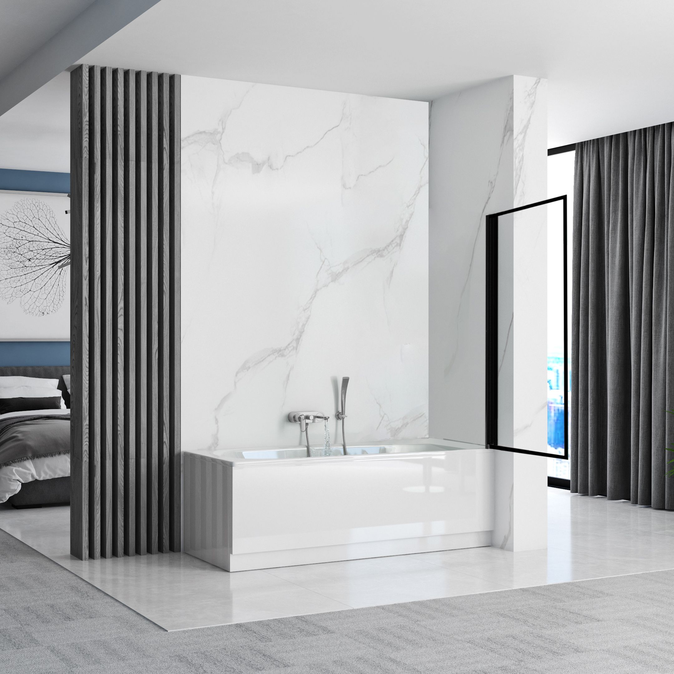 Tyylikäs ja elegantti ammesuoja muuttaa tavallisen kylpyammeesi suihkukaapiksi, estäen veden roiskumisen ja parantaen samalla kylpyhuoneesi ulkonäköä. Yksinkertaisen rakenteensa ja yhdestä lasilevystä koostuvan muotoilunsa ansiosta se sopii täydellisesti mihin tahansa kylpyhuoneeseen. Universaali asennus mahdollistaa suojan kiinnittämisen joko oikealle tai vasemmalle puolelle ammetta.