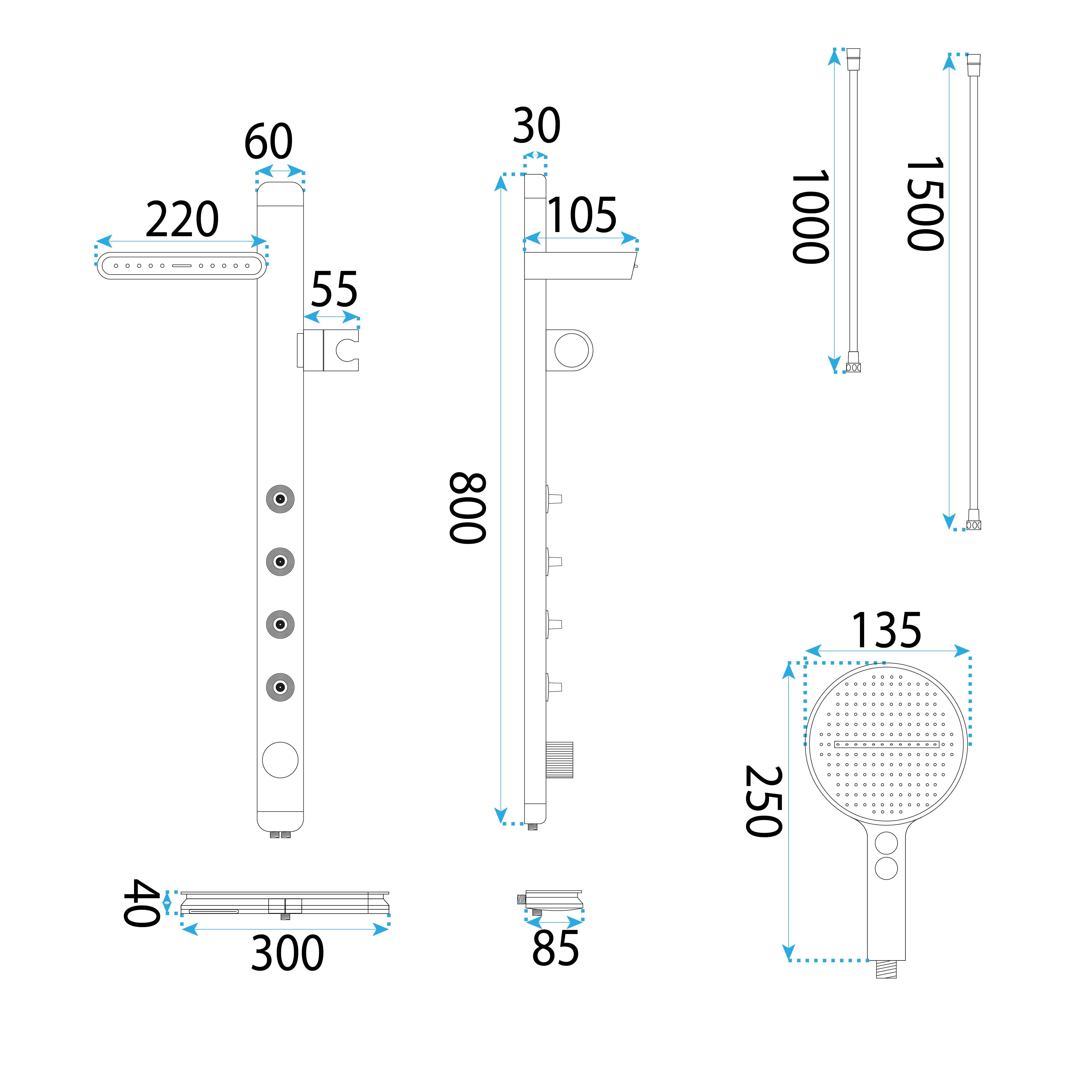 REA suihkusetti KARL THERMOSTAT titaani, 10,5X33,5X175CM