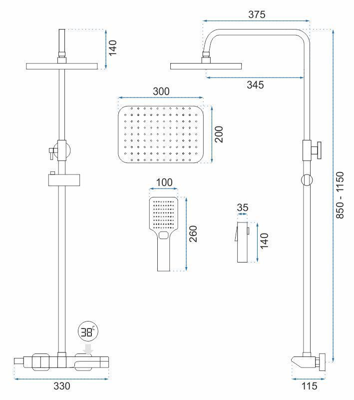 REA suihkusetti ROB THERMOSTAT kulta, 37,5X33X115CM