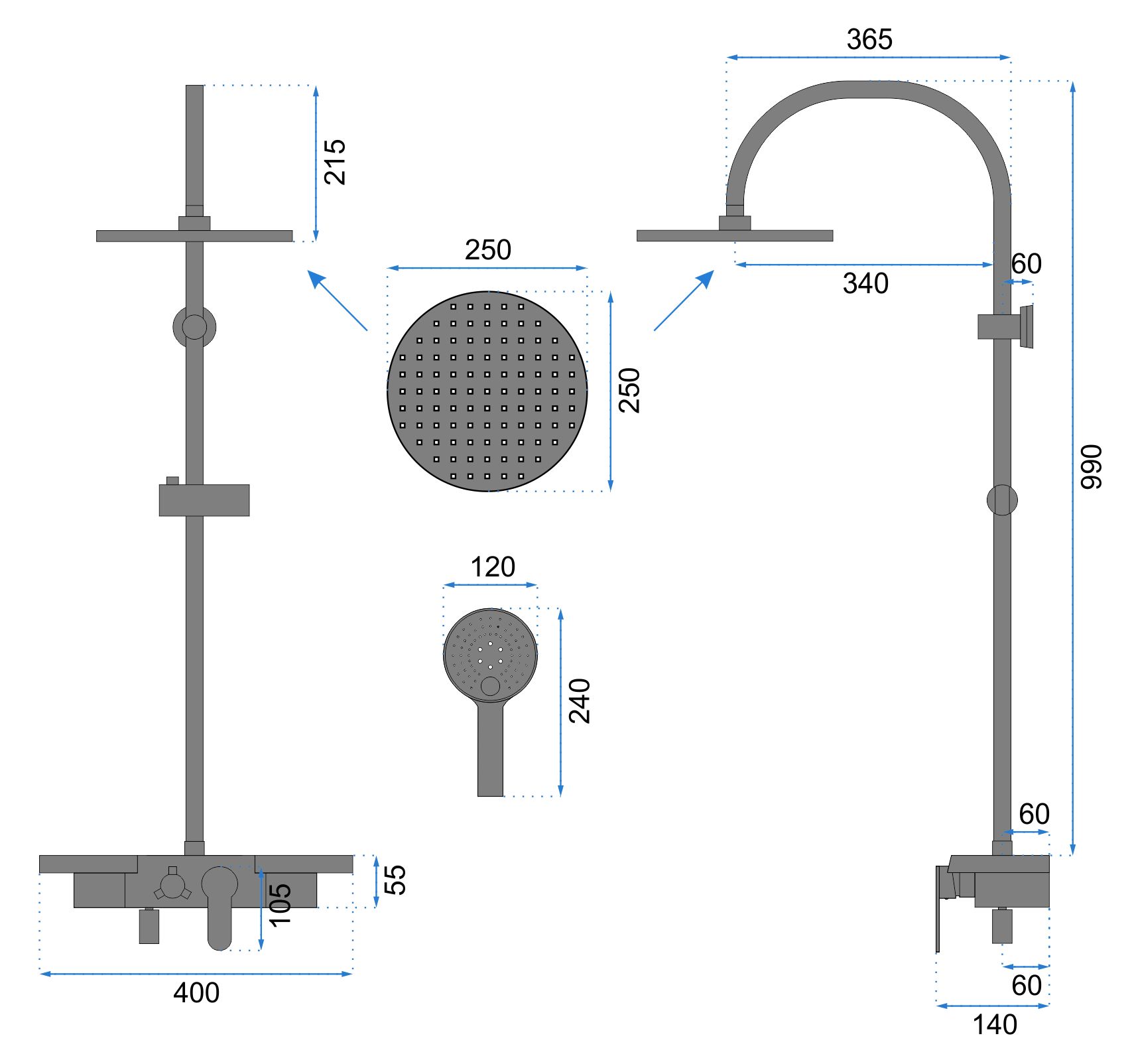 REA suihkusetti VIGO musta, 51,5X40X99CM