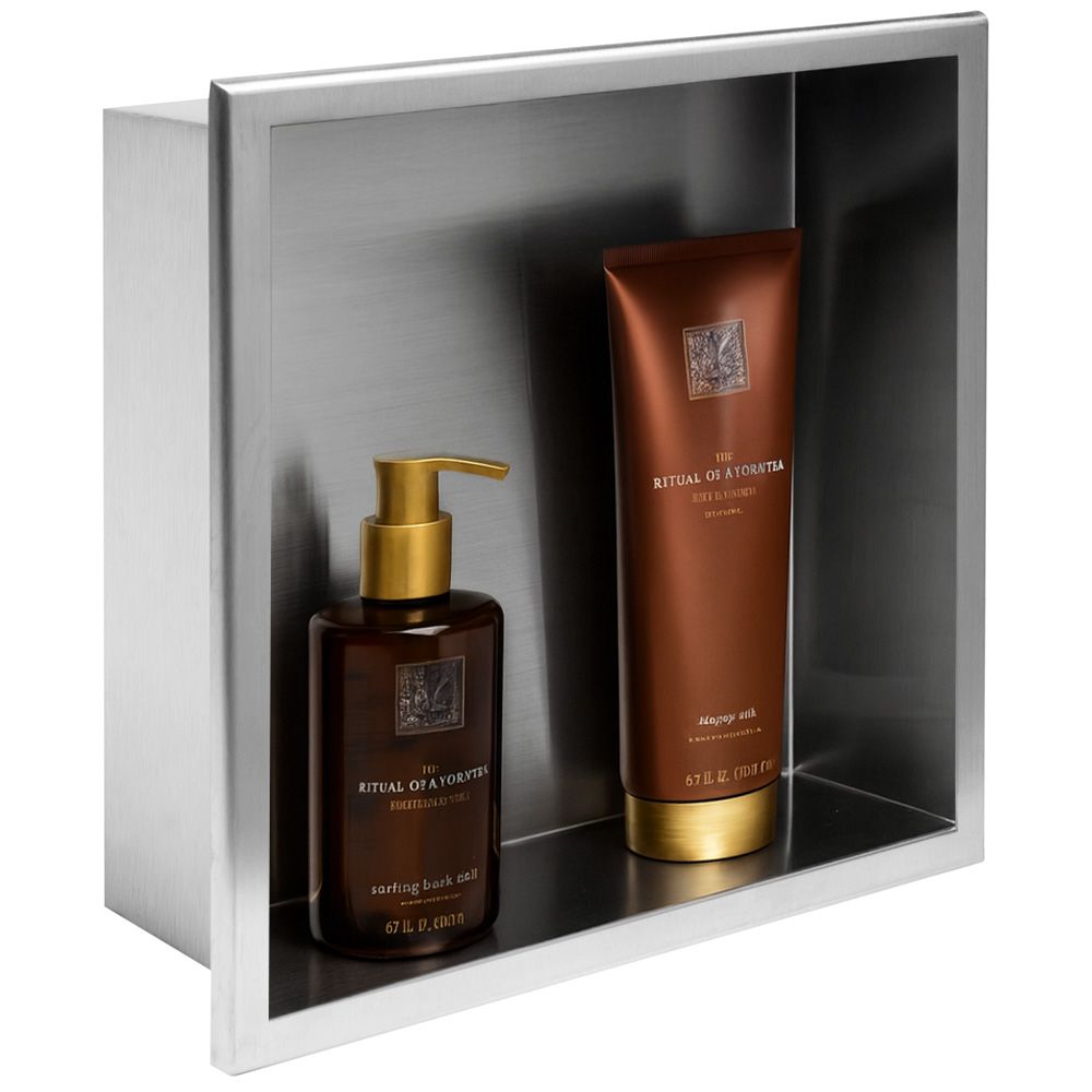 REA syvennykseen asennettava kylpyhuonehylly 1 30x30x10 harjattu teräs, 10X30X30CM