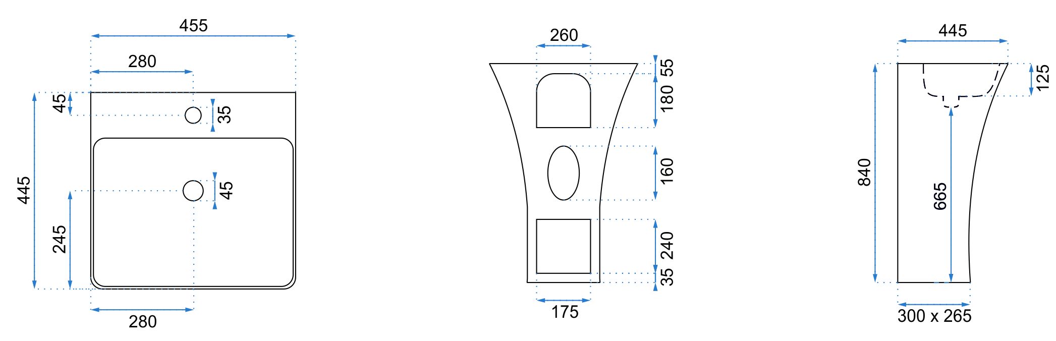 REA Vapaasti Seisova Pesuallas ADA, 45,5X45,5X84CM