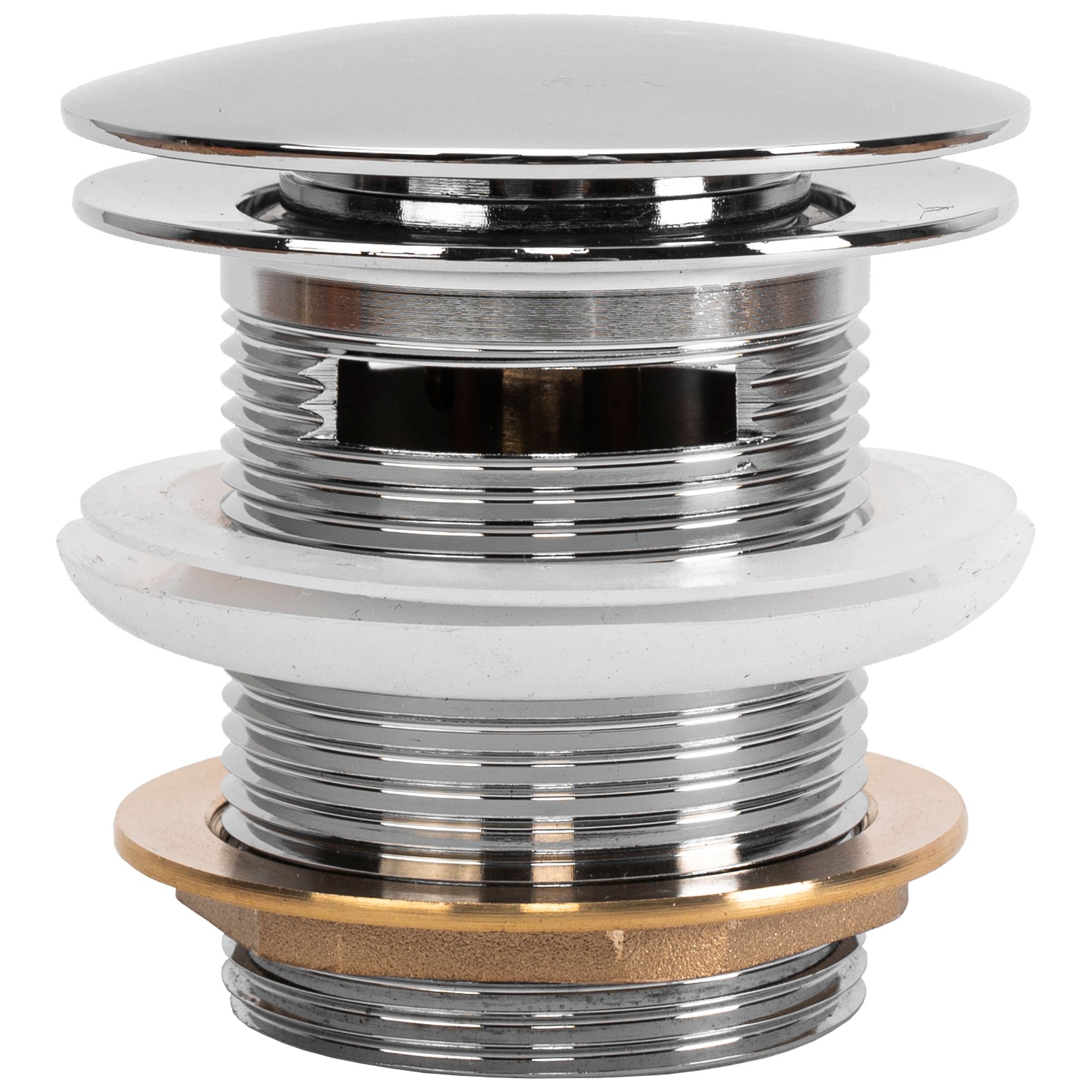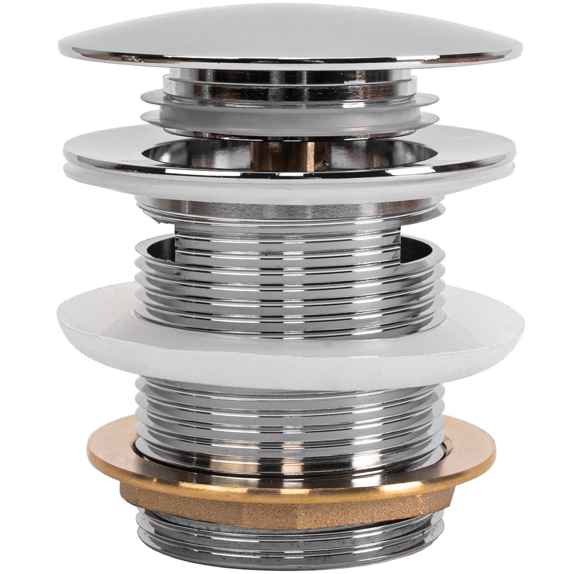Click-clack-tulppa on universaali ja sopii sekä ylivuotoaukolla varustettuihin että ilman ylivuotoa oleviin pesualtaisiin. Erityisen valmistusvaiheen ansiosta tulppa on suojattu korroosiolta, himmenemiseltä ja värimuutoksilta.