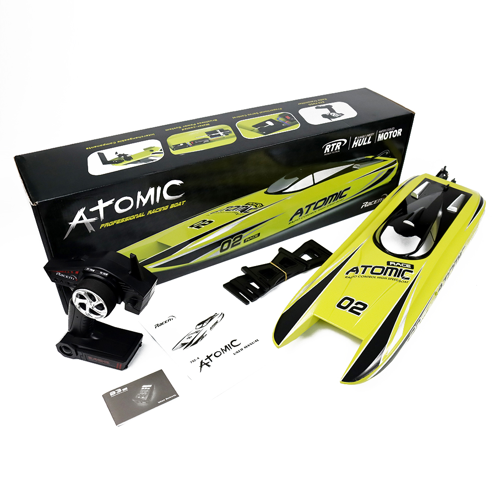 Vauhdikas, tyylikkään keltainen ja mahtavan laadukas React Atomic -RC-vene on varustettu harjattomalla moottorilla ja vesijäähdytteisellä nopeudensäätimellä. Veneen huippunopeus on peräti huimat 60 km/h.