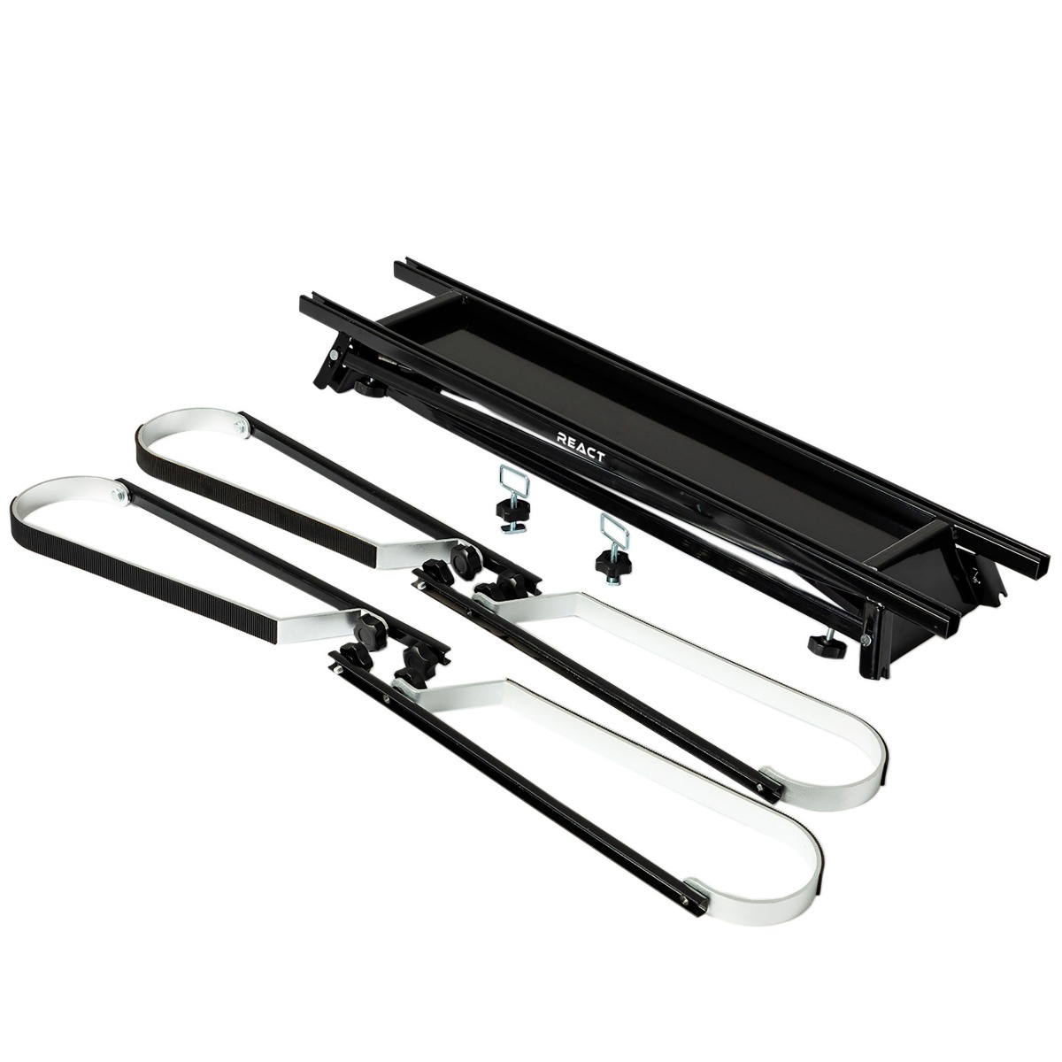 React Suksien voiteluteline kahdelle sukselle on helposti kokoontaitettava ja tukeva teline jokaiselle harrastelijasta ammattilaiseen. Molempien suksien voitelu onnistuu näppärästi ja voiteluvälineet on kätevästi säilytettävissä pöydässä olevalla tasolla. Suksien voitelutelineen pituus on helposti säädettävissä sukselle sopivaksi ja luistonesto tassut takaavat pöydän paikalla pysymisen. React Suksien voiteluteline on helppo ottaa mukaan reissuun ja säilytys ei vaadi suurta tilaa.