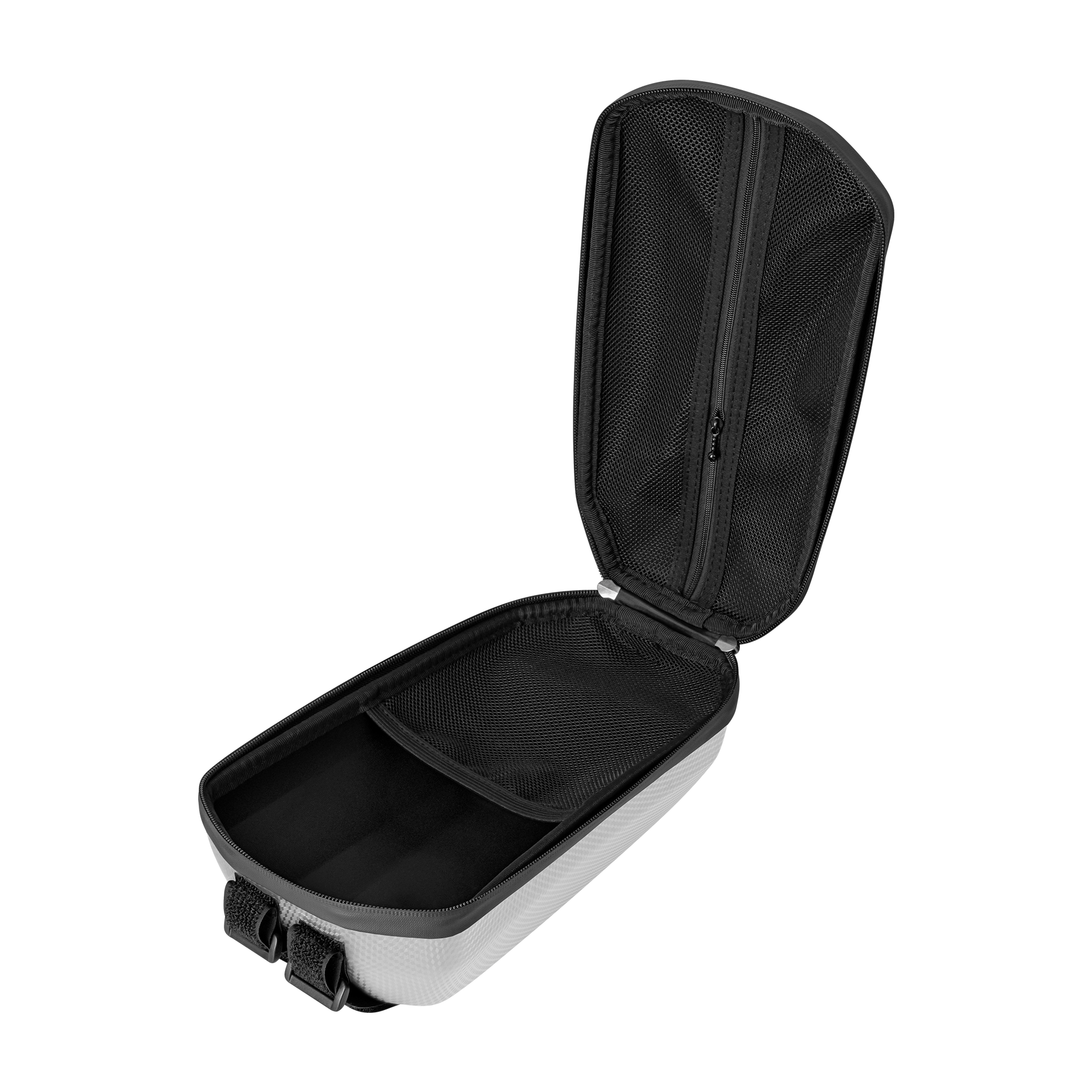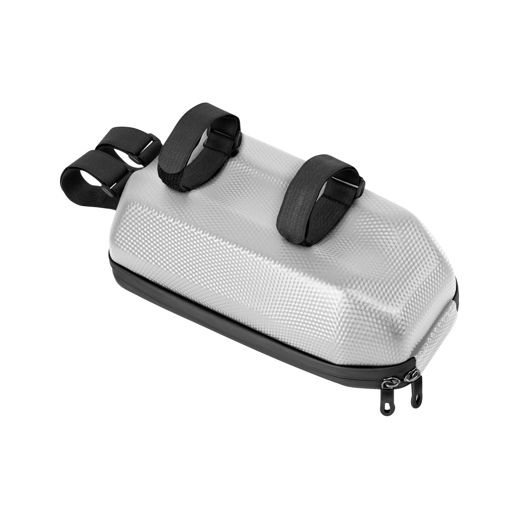 Laukku on kiinnitetty tarranauhalla, joten sen pukeminen ja riisuminen on nopeaa ja helppoa, eikä se vaadi lisätyökaluja tai -lisävarusteita. Tärkeää on, että laukussa on neljä koukkua, jotka varmistavat, ettei se putoa tai siirry – edes epätasaisilla pinnoilla ajettaessa.