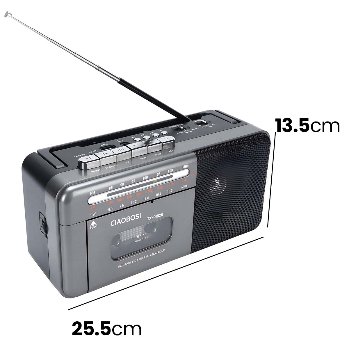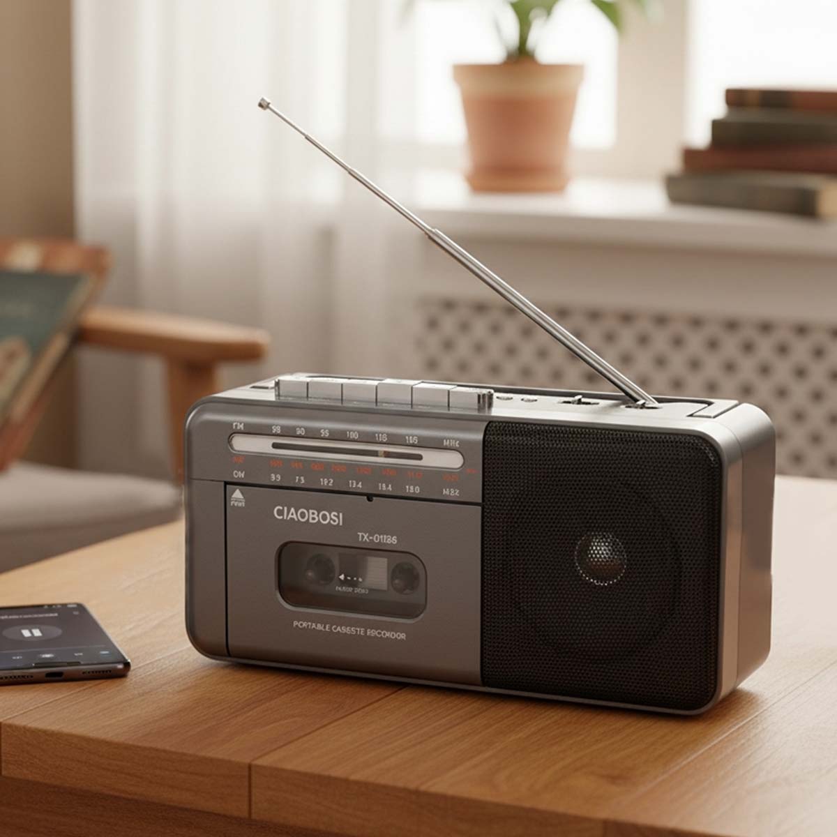 Tässä retro-monitoimiradiossa yhdistyvät vintage-tyyli ja nykyaikaiset käyttötarkoitukset radion kuunteluun ja nauhojen kuunteluun. Siinä on kasettisoitin tallenteiden etsimistä varten ja Bluetooth-yhteys musiikin suoratoistoon älypuhelimesta ilman kaapeleita. Sen AM FM SW -virittimen avulla voit vaihtaa taajuusaluetta ja kuunnella eri asemia alueesta riippuen Ihanteellinen kotona, toimistossa tai liikkeellä.