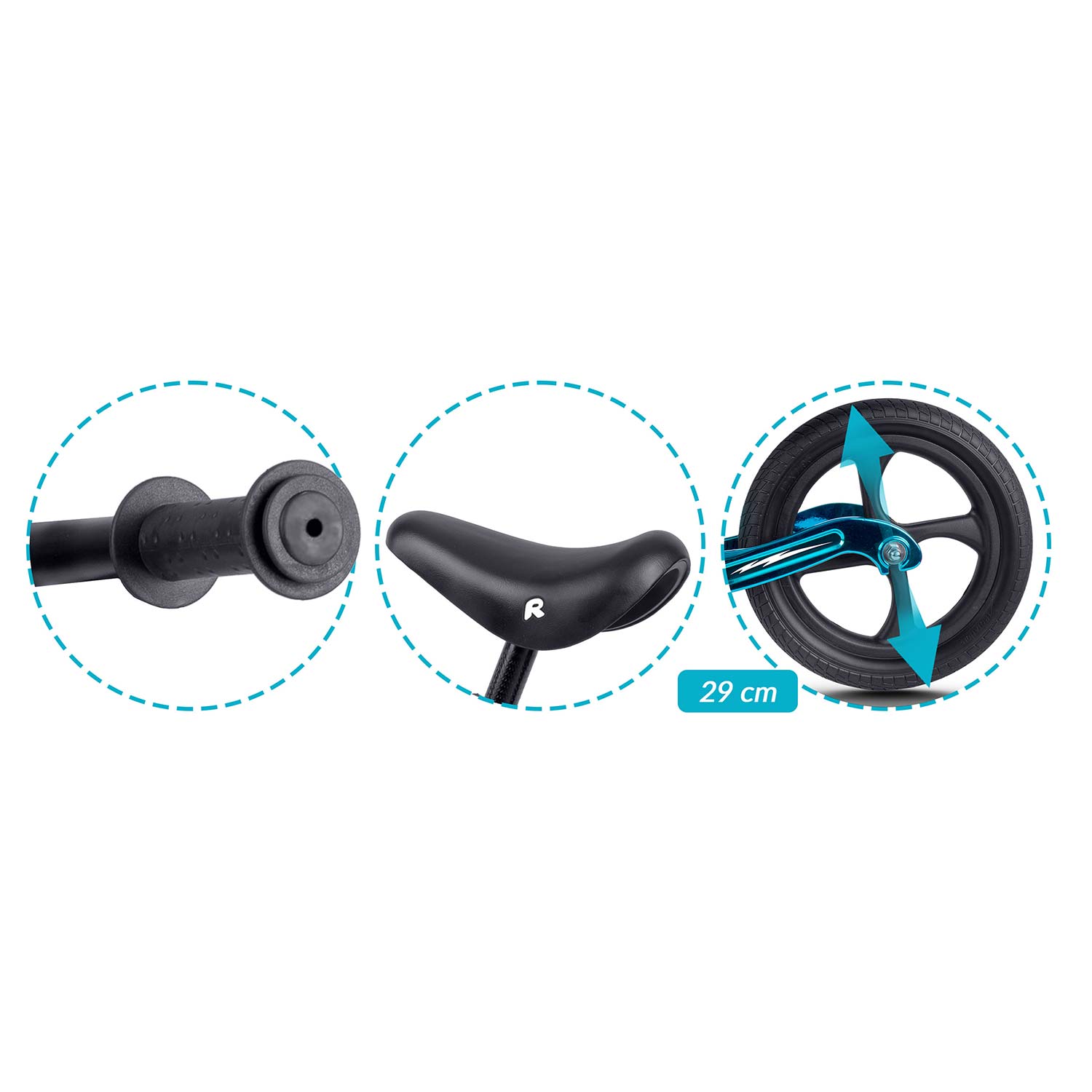 - Pyörä: suuri, tukeva EVA-vaahtomuovipyörä kestävillä renkailla, jotka takaavat vakauden ja tasaisen ajon
