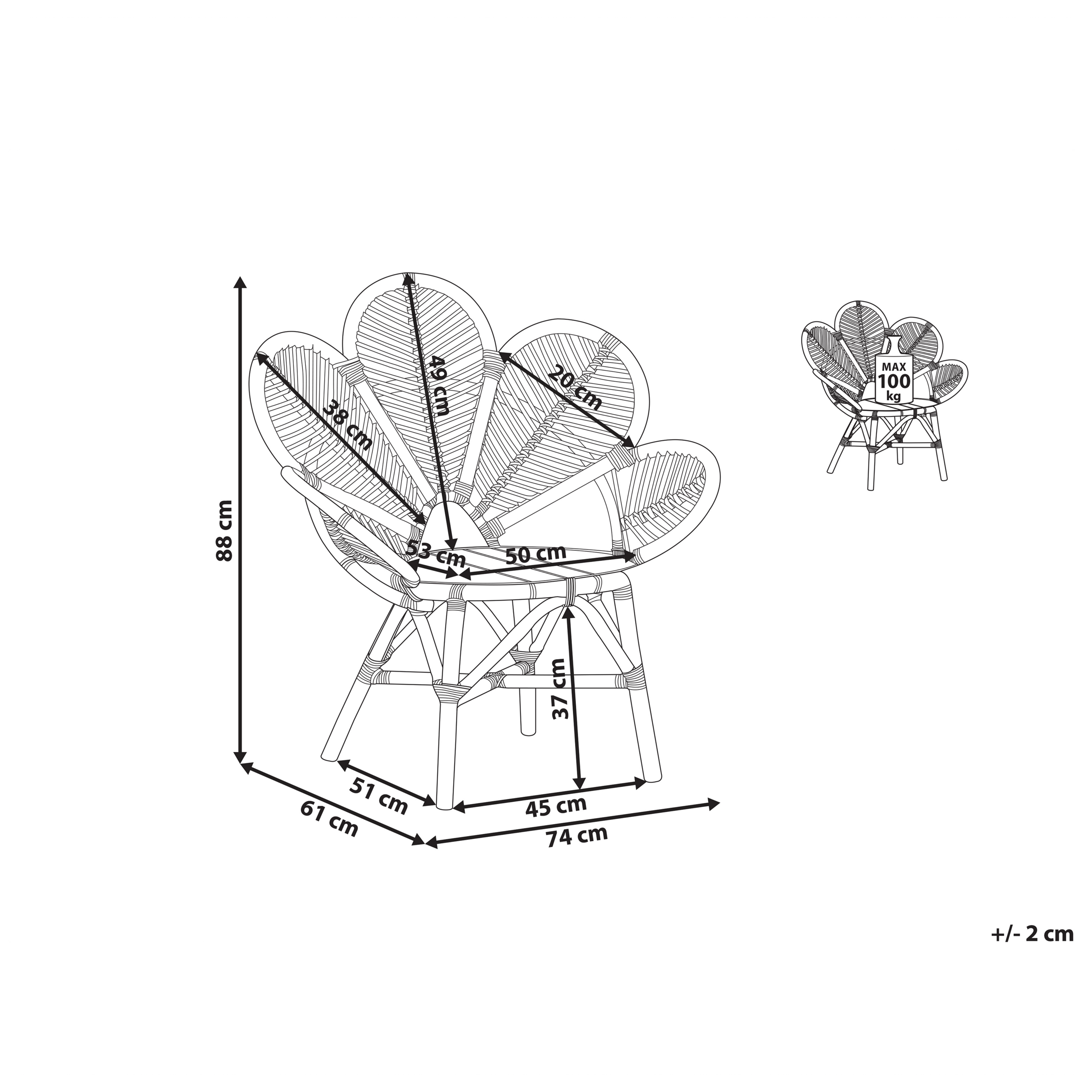 Boheemi nojatuoli tyylikkäällä selkänojalla. Tämä trendikäs riikinkukkotuoli on loistava valinta mihin tahansa asuintilaan. Se on valmistettu kokonaan kestävästä ja kevyestä luonnollisesta rottingista, joten sitä on helppo siirtää paikasta toiseen. Koristeellisen muotoilunsa ansiosta riikinkukkotuoli sopii täydellisesti etenkin rustiikkisiin tai boho-tyylisiin sisustuksiin.