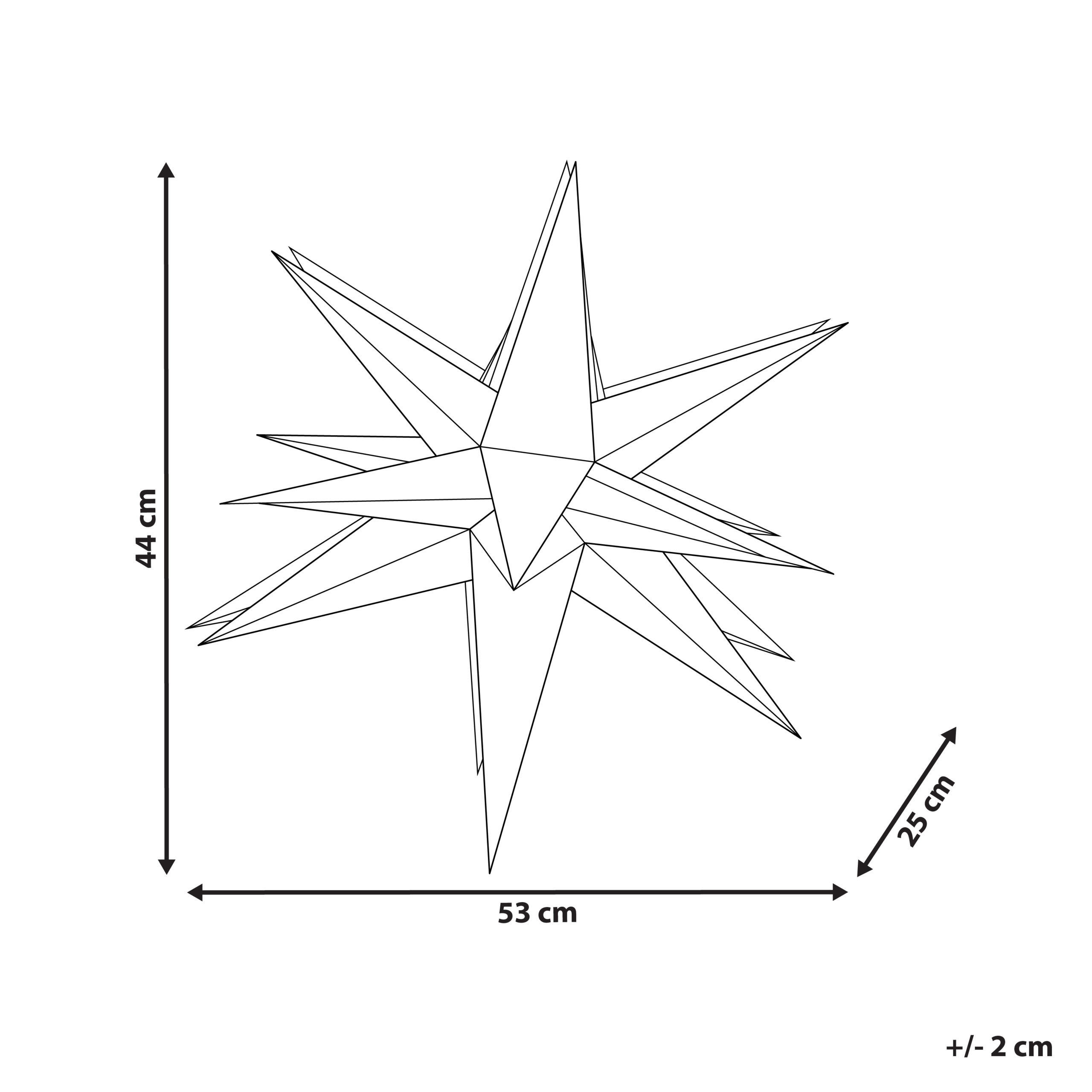 Tähdenmuotoinen joulukoriste. Valaise juhlapyhäsi tällä tähdenmuotoisella koristeella, joka on kauniisti valaistu LED-valoilla. Tähti sopii täydellisesti juhlatunnelman luomiseen, ja sen voi sijoittaa tasolle tai kiinnittää roikkumaan juhlatyylisi mukaisesti. Taitettava muotoilu helpottaa säilytystä ja moderni ulkonäkö tekee koristeesta ihanteellisen lisän kauden sisustukseen.