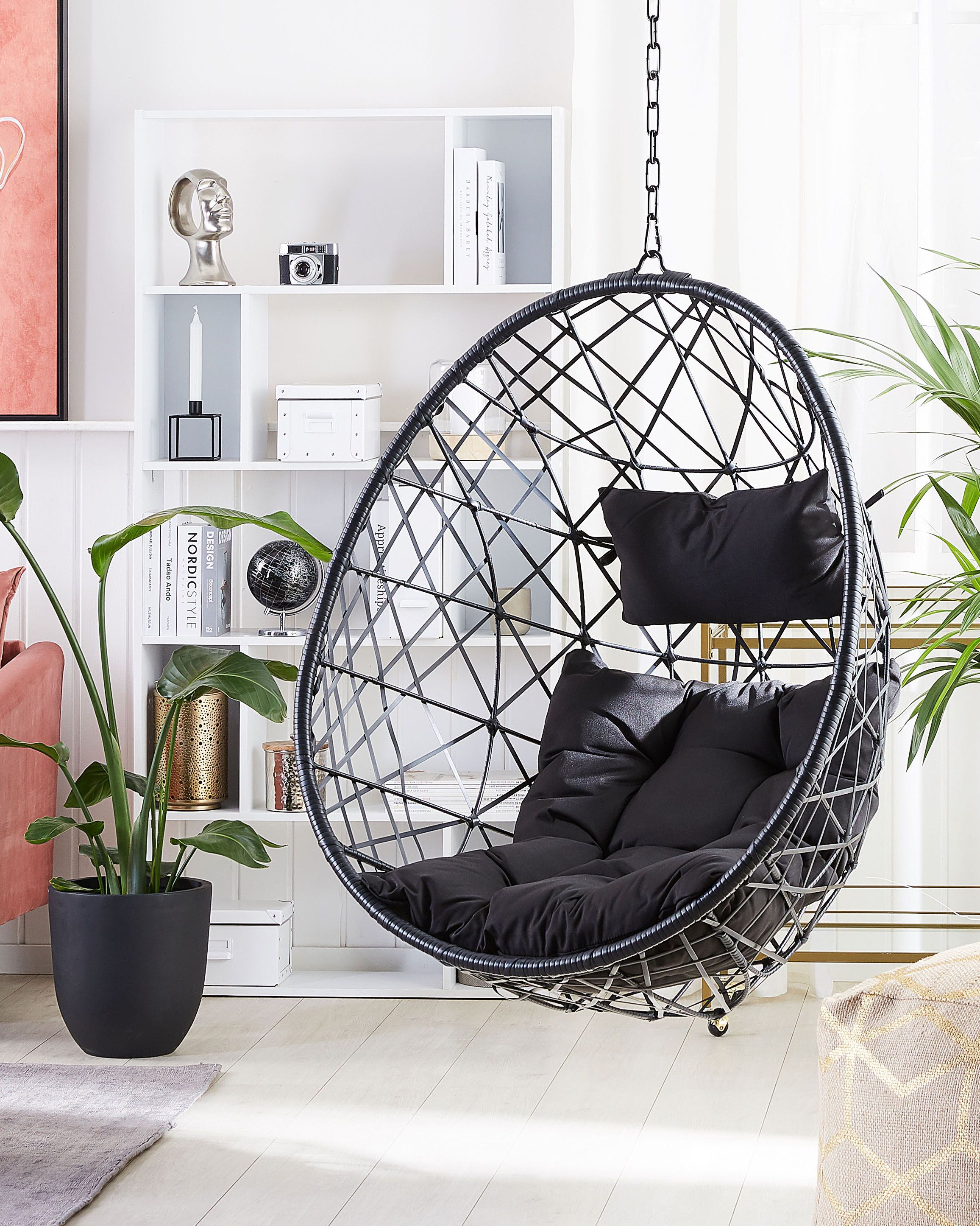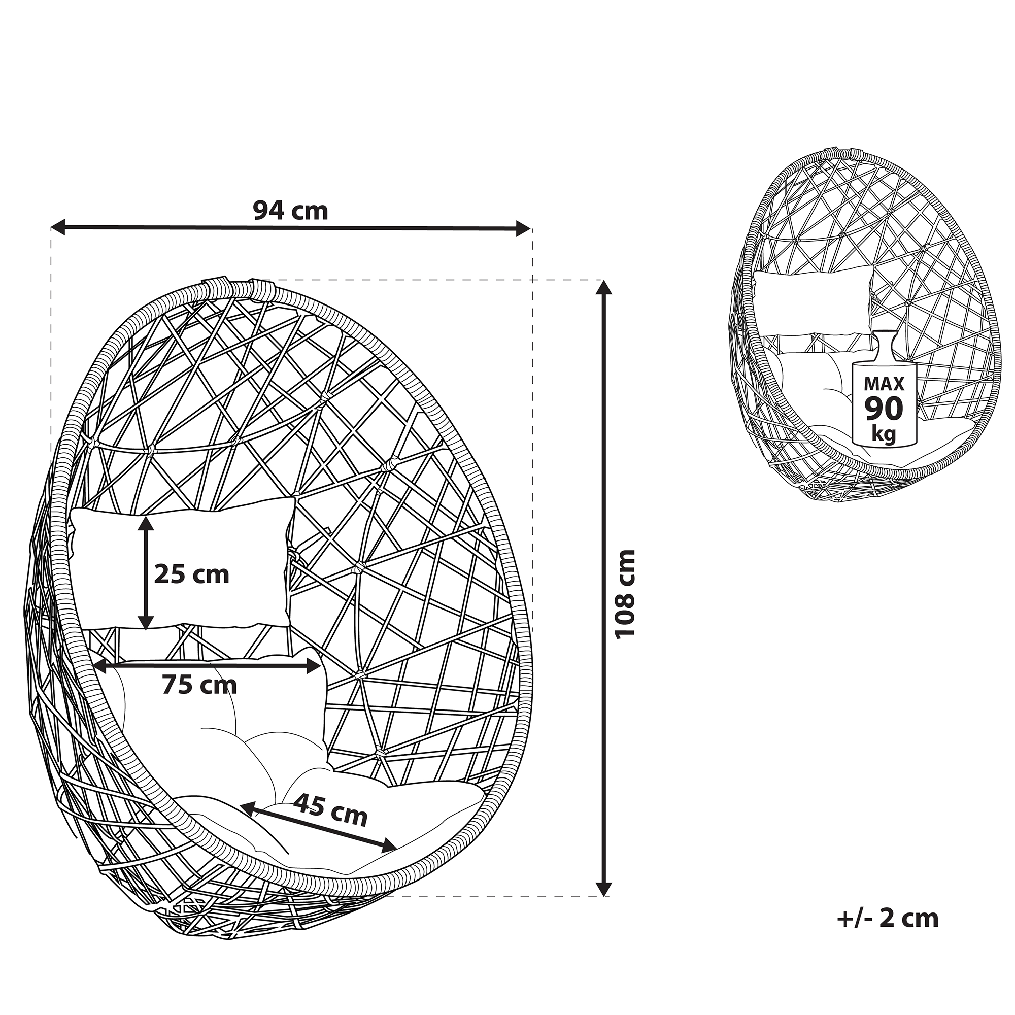 Moderni ripustettava riippukeinu sisä- ja ulkokäyttöön. Mielenkiintoisen muotoilun ja vastustamattoman mukavuuden yhdistävä riipputuoli tuo ripauksen boho-tyyliä mihin tahansa tilaan, makuuhuoneesta olohuoneeseen. Sen tukevasta jauhemaalatusta teräksestä valmistettu runko on päällystetty kestävällä polyrottinkipunoksella, jonka avonainen muoto tuo oleskelutilaan romanttisen ja huolettoman ilmeen. Vankka metallinen kettinki takaa hellävaraisen keinumisen. Mukana tulevat pehmusteet takaavat lisämukavuuden. Ripusta tuoli katosta tai sille sopivasta jalustasta. Väriensä ansiosta riipputuoli sopii täydellisesti moniin erilaisiin sisustuksiin.