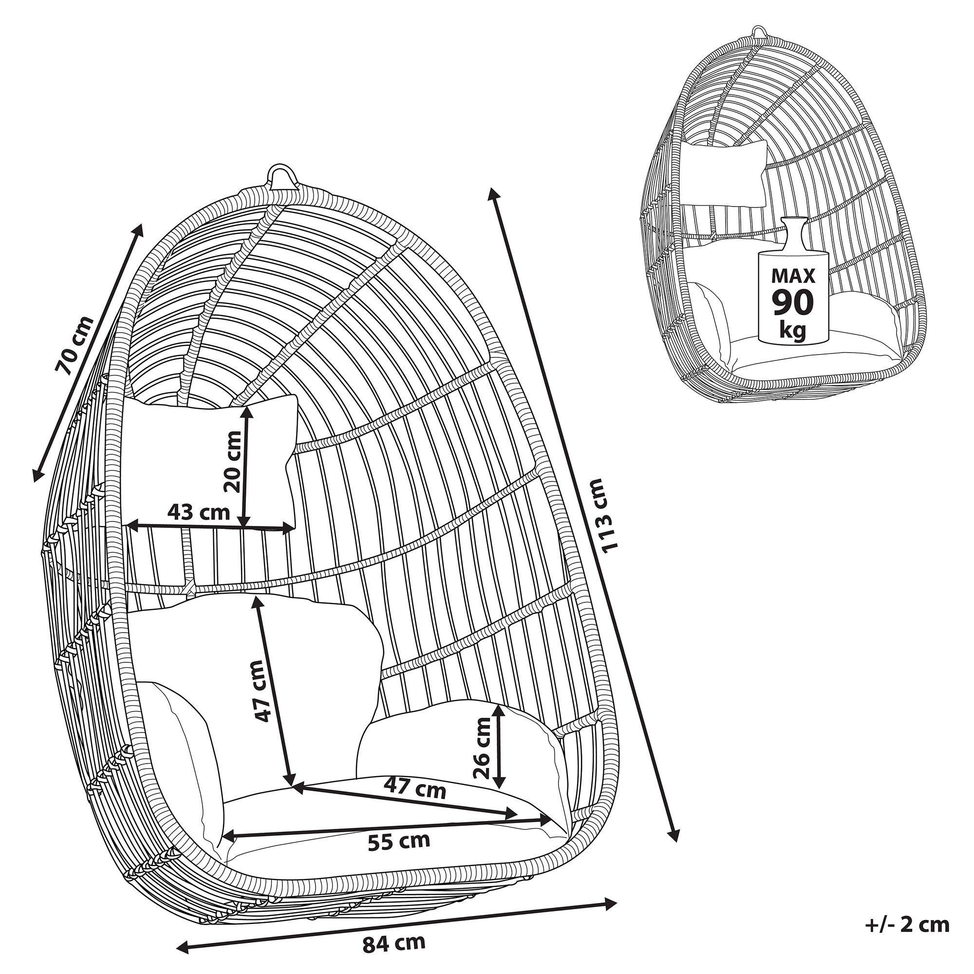 Lisätiedot: Tarjous ei sisällä kaapelia tai köyttä, jolla tuoli ripustetaan. Tämä tulee ostaa erikseen., Huomaathan, että tuote on herkkä sääoloille ja se on varastoitava sisällä tai kohtuullisesti katetussa tilassa, kun sitä ei käytetä.