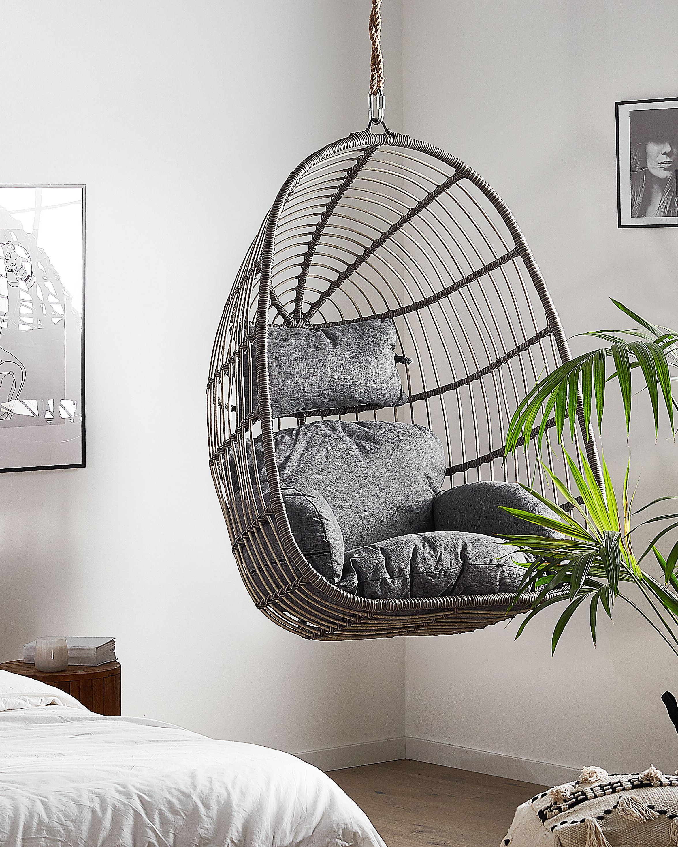Boheemi riippukeinu sisä- ja ulkokäyttöön. Tämä riipputuoli on ideaalinen valinta boho-tyylistä pitäville tai modernia tyyliä havitteleville. Sen laadukkaalla polyrottinkipunoksella päällystetty runko on valmistettu vankasta teräksestä. Ripusta riipputuoli katosta tai sille sopivaan telineeseen ja sijoita se olohuoneeseen tai makuuhuoneeseen, jossa se korvaa tavallisen nojatuolin. Kestävien materiaaliensa ansiosta voit asettaa sen myös parvekkeelle tai puutarhaan luodaksesi mukavan rentoutumisnurkkauksen. Mukana tulevat paksut pehmusteet takaavat istumamukavuuden. Vahva kettinki takaa hellävaraisen keinumisen.