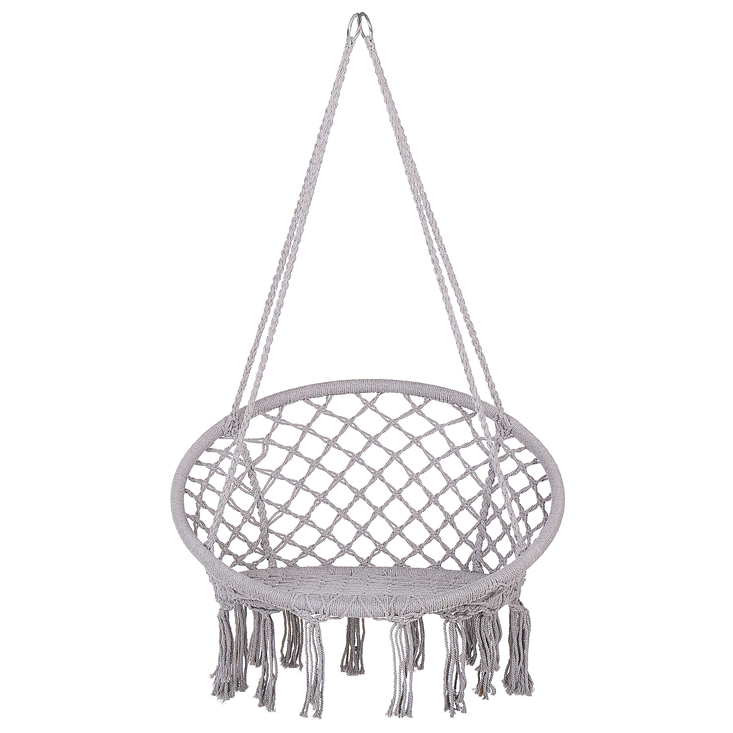Boho-tyylinen makramee riippukeinu. Nauti keinumisesta sisätiloissa, kuten makuuhuoneessa tai olohuoneessa tällä boho-tyylisessä keinussa. Upeassa rennossa makramee riipputuolissa voit rentoutua ja vaikka lukea kirjaa. Keinun runko on tukeva ja verkko on kudottu makrameesolmuilla puuvillanarusta. Riippukeinu luo rennon ja boho-tyylisen ilmeen sisustukseen.