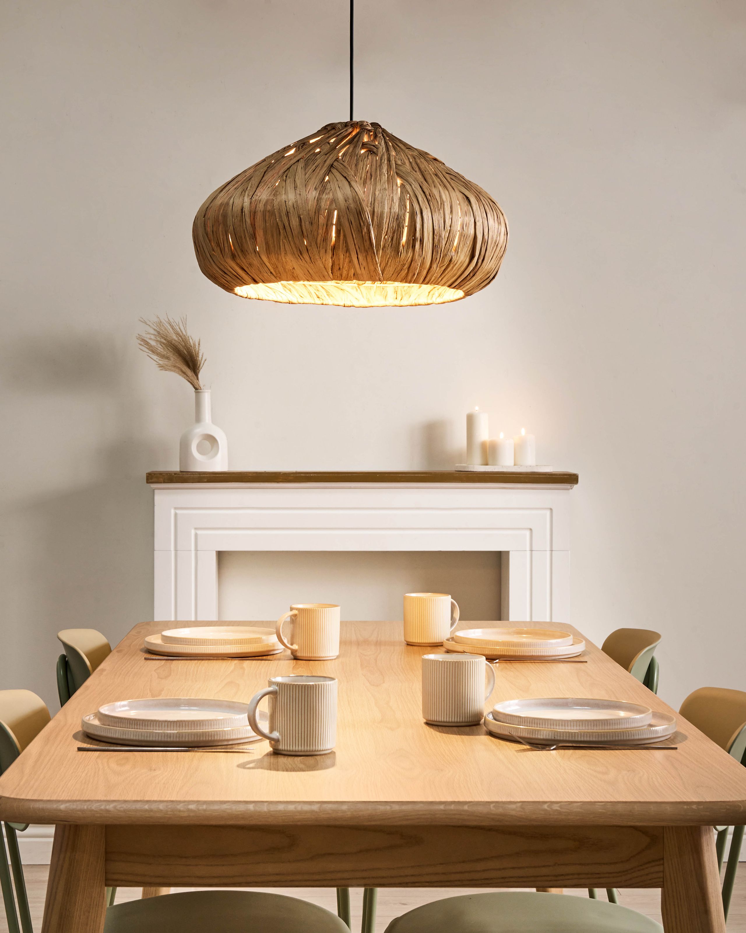 Boheemi riippuva valaisin. Tämä boho-tyylinen riippuvalaisin on käsin valmistettu kestävästä vesihyasintista, minkä ansiosta se tuo luonnonviehätystä ja lämpöä mihin tahansa sisustukseen. Punottu rakenne luo kodikkaan tunnelman pehmeän valon leikillä. Valaisin sopii täydellisesti olohuoneeseen, ruokailutilaan tai keittiöön, lisäten tilaan orgaanisen ja ajattoman aksentin.