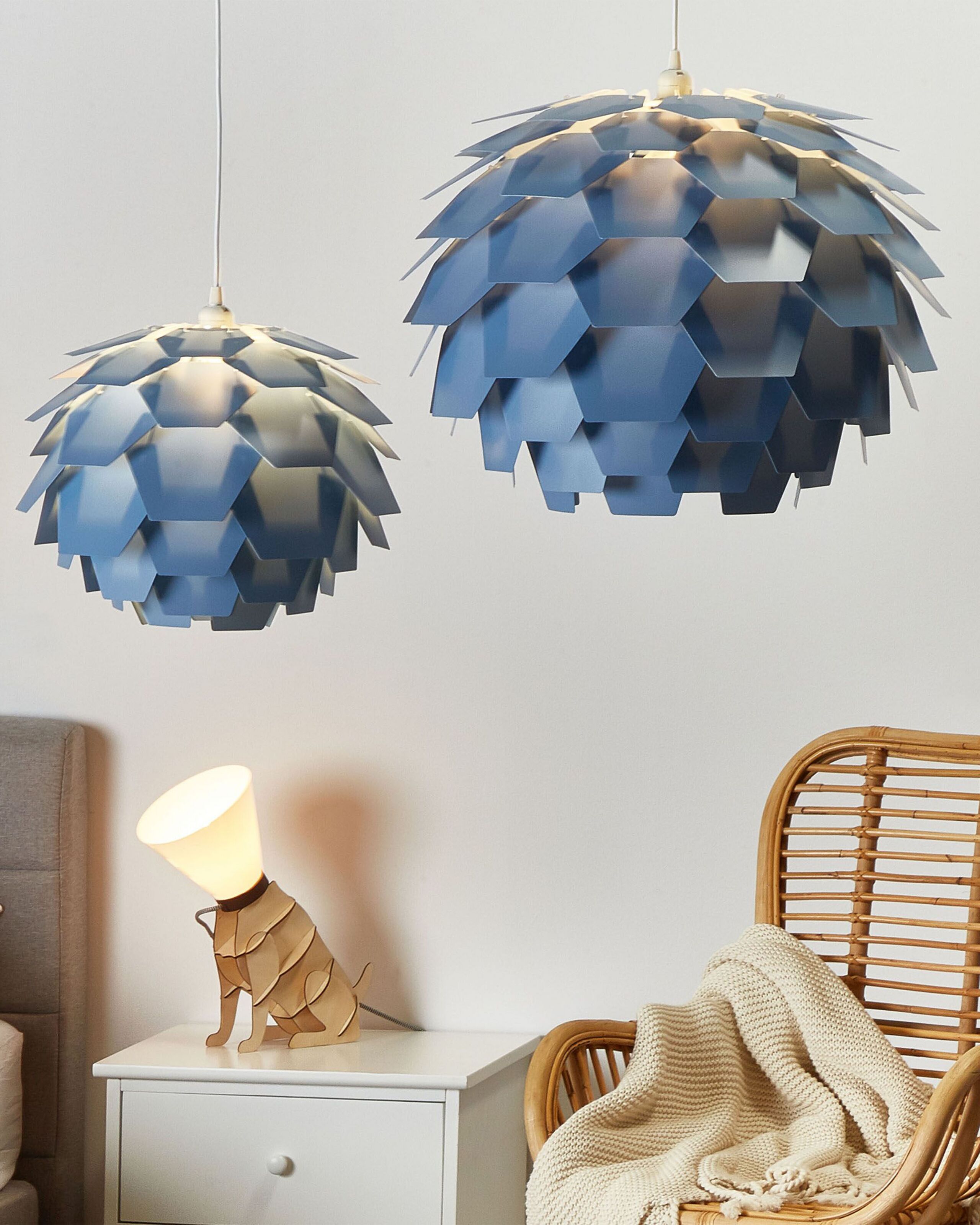 Skandinaavinen minimalistinen valaisin. Tämän riippuvalaisimen minimalistinen mutta ainutlaatuinen ja erottuva muotoilu on saanut inspiraatiota skandinaavisista sisustuksista. Useista kuusikulmion muotoisista muovilaatoista koostuva varjostin luo herkän ja tunnelmallisen valaistuksen, joka korostaa pehmeästi mitä tahansa sisustusta eri kulmista. Trendikäs väri ja käpyä muistuttava muoto saavat valaisimen erottumaan edukseen jokaisessa modernissa tai nykyaikaisessa kodin sisustuksessa.