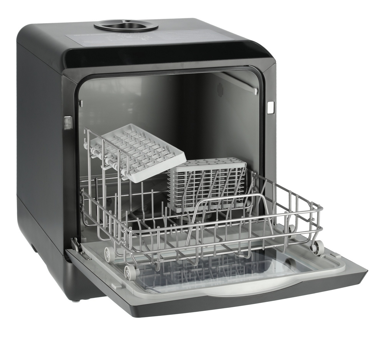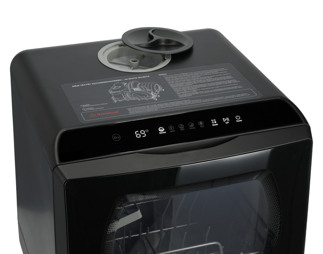 Hiljainen, helppokäyttöinen ja kompakti astianpesukone pieneen keittiöön, kesämökille, asuntovaunuun; myös sinne, missä ei ole juoksevaa vettä. Voidaan kytkeä vesipisteeseen, mutta toimii myös ilman. Riittää, että saatavilla on 220 V sähköä verkosta, aggregaatista tai invertteristä.