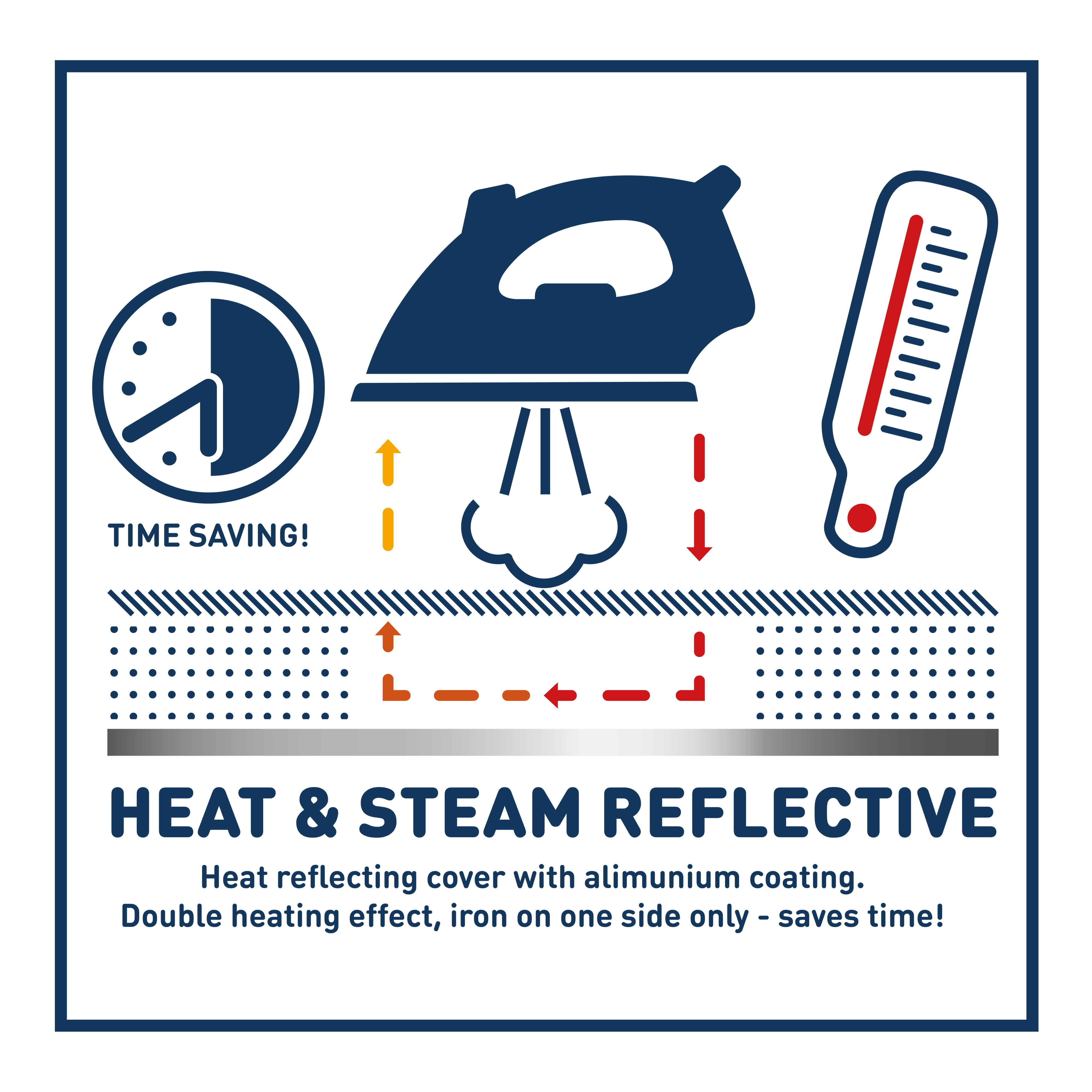 Silityslauta, jossa on suuri alusta höyrysilityskeskuksille. Suorakulmaiset teräsputket muodostavat vakaan rungon, joka täyttää korkeat suoritusvaatimukset. Laudassa on portaattomasti säädettävä korkeus, lukittava runko taitettuna sekä lämpöä heijastava päällinen, joka hyödyntää höyryn uudelleen nopeampien ja parempien silitystulosten saavuttamiseksi. Päällinen koostuu viidestä toiminnallisesta kerroksesta, jotka on erityisesti suunniteltu höyrysilitysraudoille, mukaan lukien alumiinikerros, joka estää veden tippumisen lattialle. Kiinnitys tarranauhalla täydellisen istuvuuden varmistamiseksi. Kaikki päälliset ovat OEKO‑TEX® STANDARD 100 ‑sertifioituja ja yhteensopivia Mary-, Peggy‑ (metallinen kuvio), Holly- ja Drop Stop ‑kansien kanssa.
