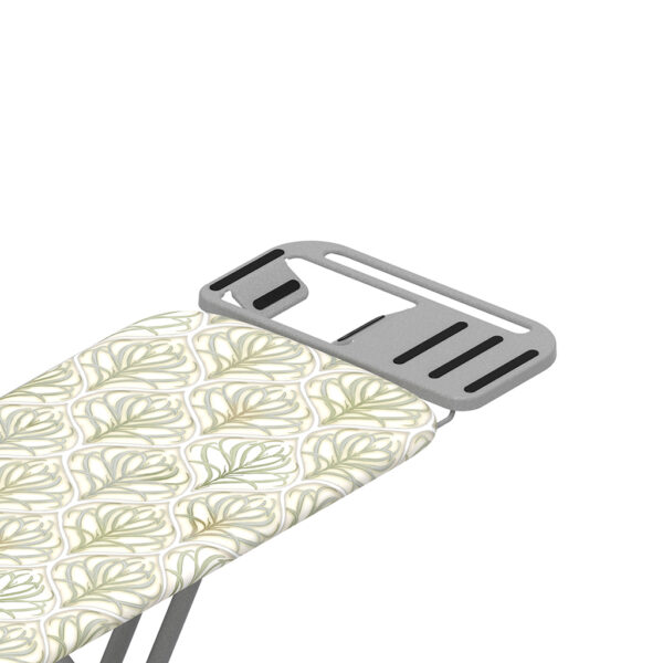 Silityslauta, jossa on erityisesti suunniteltu silitysraudan teline ja ripustinratkaisu vastasilitettyjä vaatteita varten. Säädettävä korkeus optimaalista ergonomiaa varten ja lukittava runko turvallista säilytystä varten. OEKO‑TEX® STANDARD 100 ‑sertifioitu päällinen. Silityspinta: 38×120 cm.
