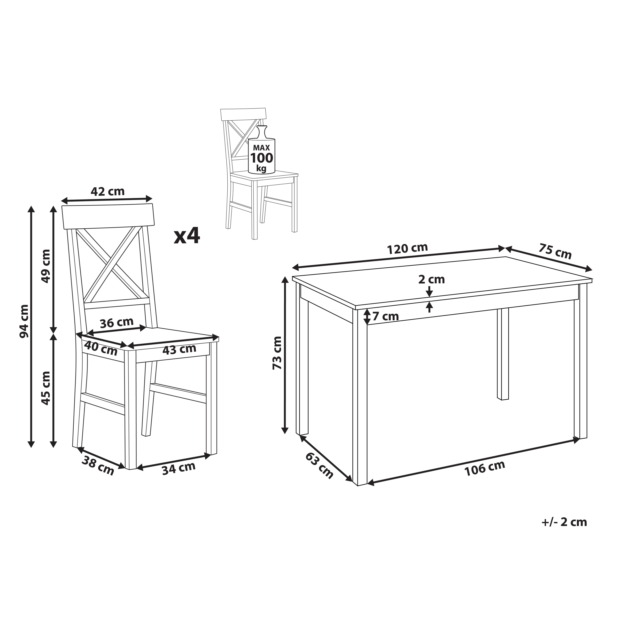 Skandinaavinen ruokailuryhmä neljälle hengelle. Lisää ruokailutilaasi tai keittiöösi ripaus skandinaavista viehätystä tällä ajattomalla neljän hengen ruokailuryhmällä. Pöydän leveä taso sopii erinomaisesti perheen yhteisiin aterioihin tai illallisjuhliin ja tarjoaa runsaasti tilaa ruoille, juomille ja muulle. Tuolien mukavat istuimet varmistavat miellyttävän ruokailukokemuksen. Tukevat, poppelipuusta valmistetut jalat takaavat kestävän vakauden. Setin yksinkertainen mutta elegantti muotoilu sulautuu vaivattomasti moniin sisustuksiin.