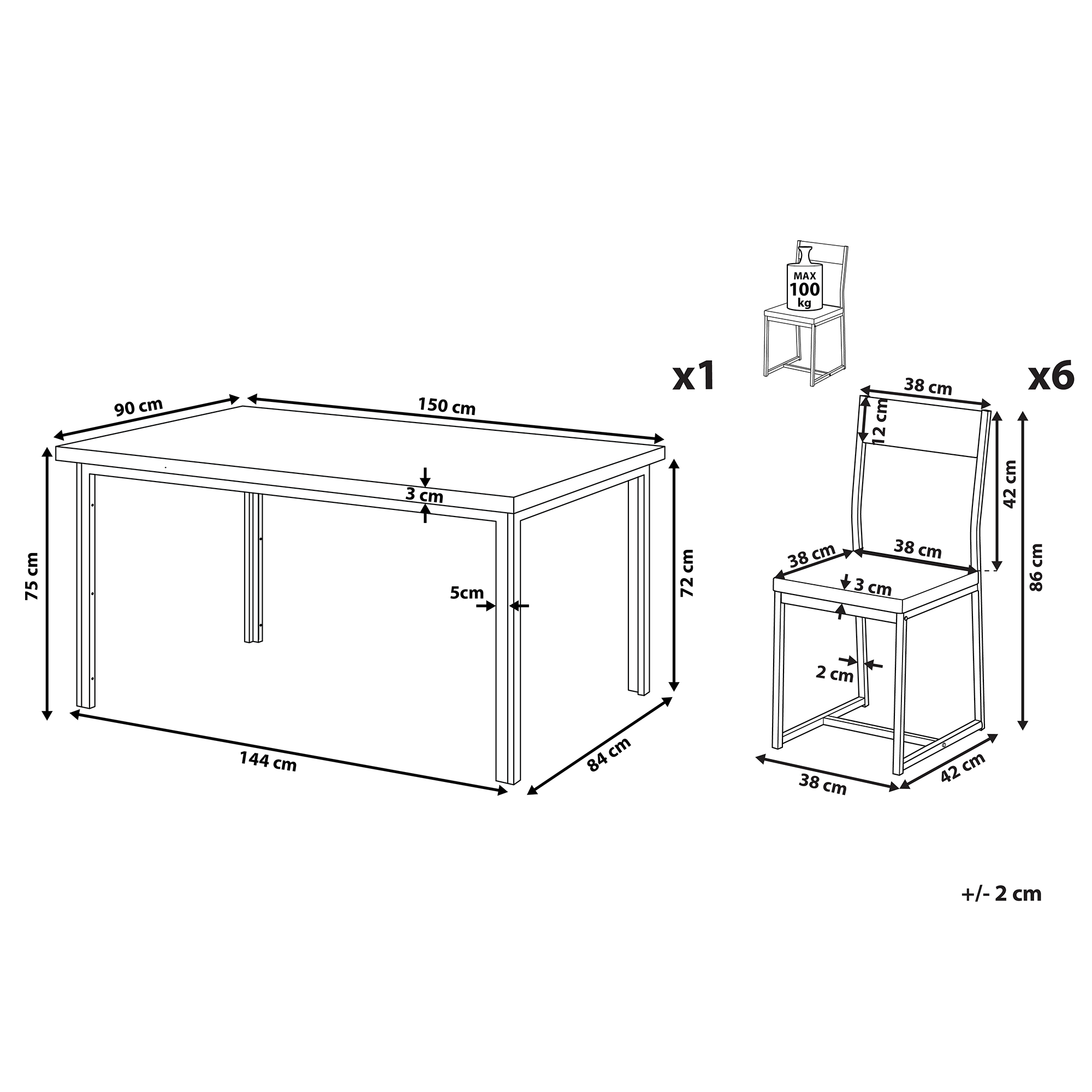 Pöydän mitat: 150x90x75 cm