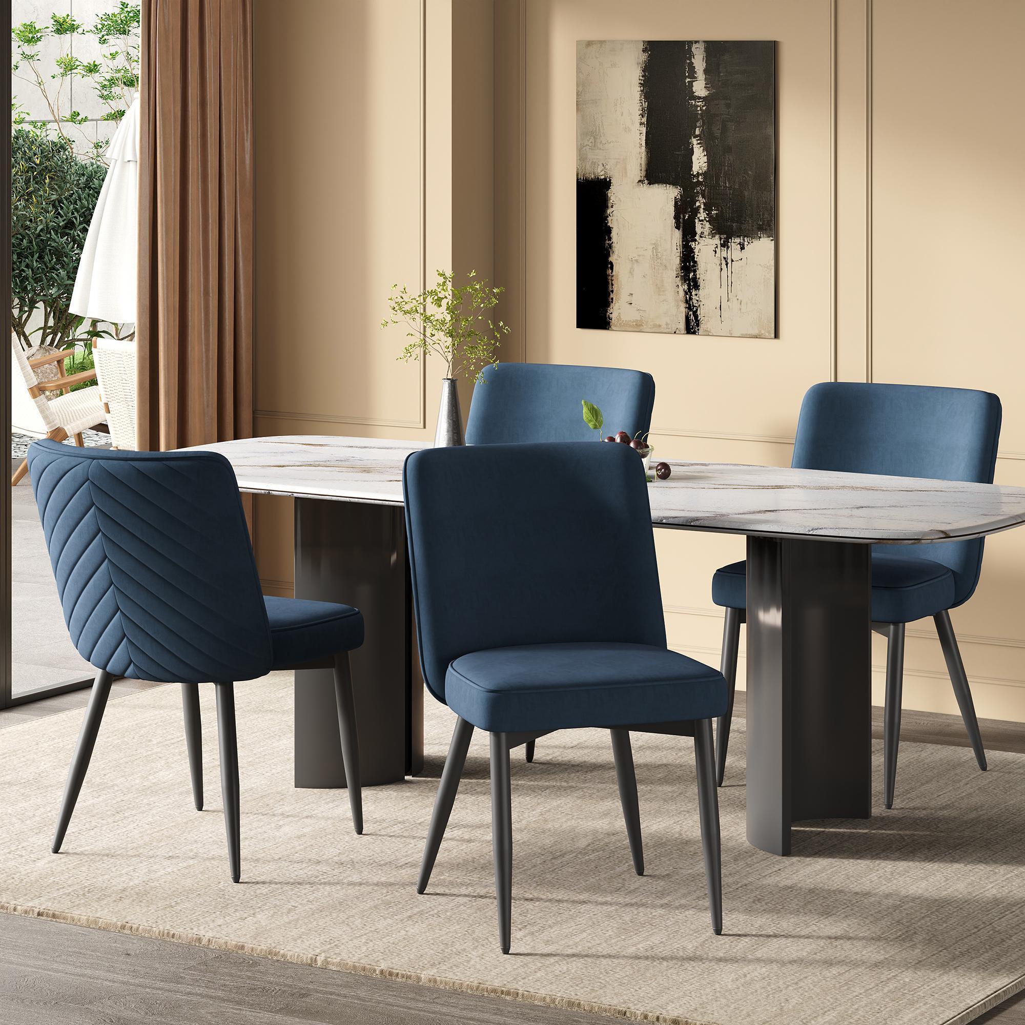 Ruokapöydän tuoli 4 kpl, samettia, tummansininen