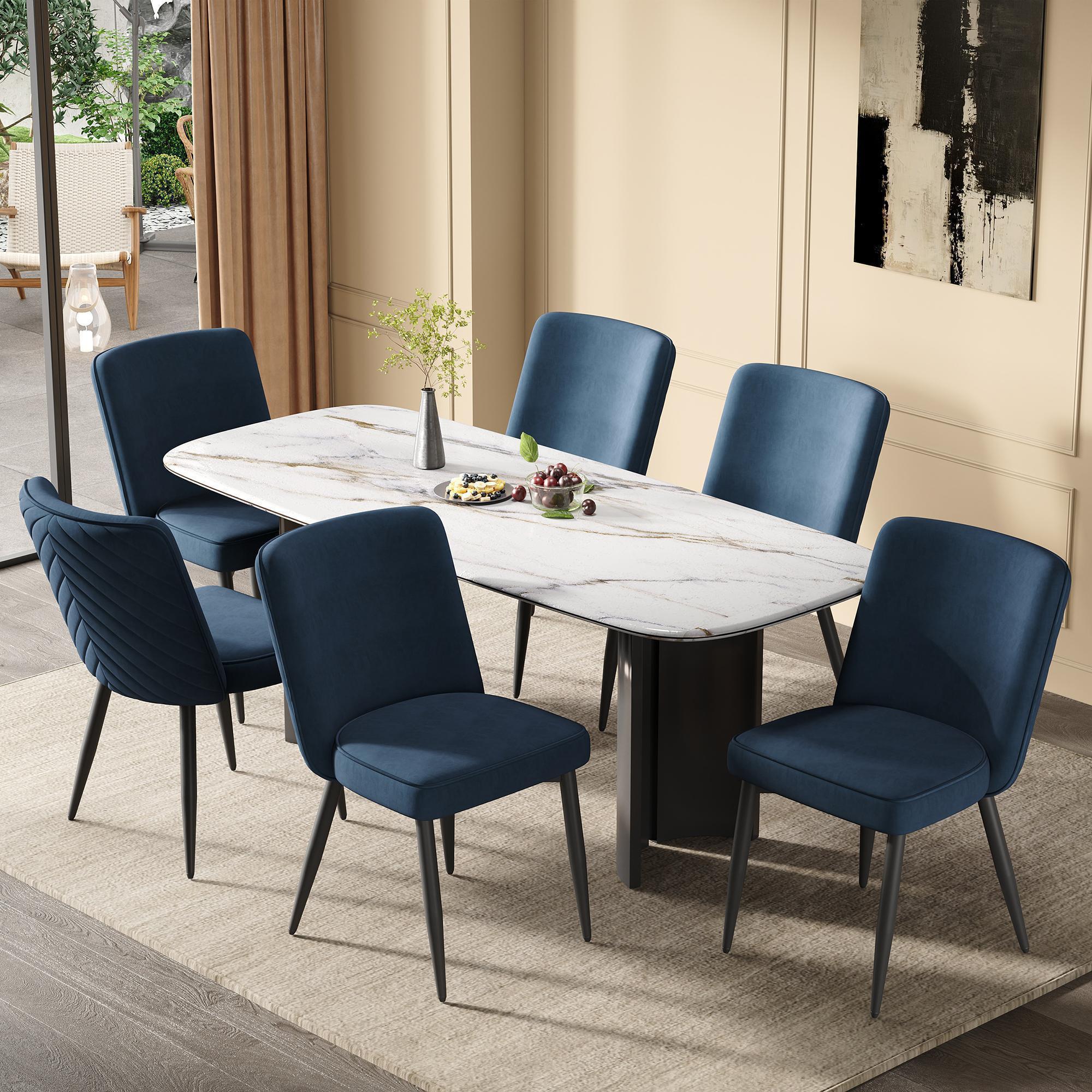 Ruokapöydän tuoli 6 kpl, samettia, tummansininen