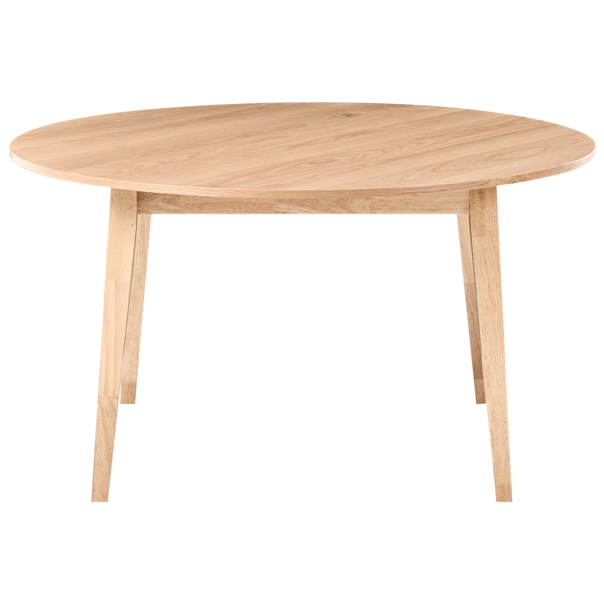 Pyöreä pöytä neljälle hengelle. Tämä elegantti pyöreä ruokapöytä takaa pitkäikäisen laadun ja vakauden. Sen pöytälevy on valmistettu kestävästä, vaalealla tammiviilulla viimeistellystä MDF-levystä, ja jalat ovat vankkaa kumipuuta. Moderni mutta ajaton muotoilu tekee pöydästä täydellisen lisän monenlaisiin sisustuksiin, aina nykyaikaisesta klassiseen. Se sopii erinomaisesti päivittäisiin aterioihin perheen kesken tai tyylikkäisiin ystävien illalliskutsuihin. Pöytä tarjoaa mukavasti tilaa jopa neljälle hengelle, lisäten ripauksen hienostuneisuutta jokaiseen ruokailutilaan tai keittiöön.