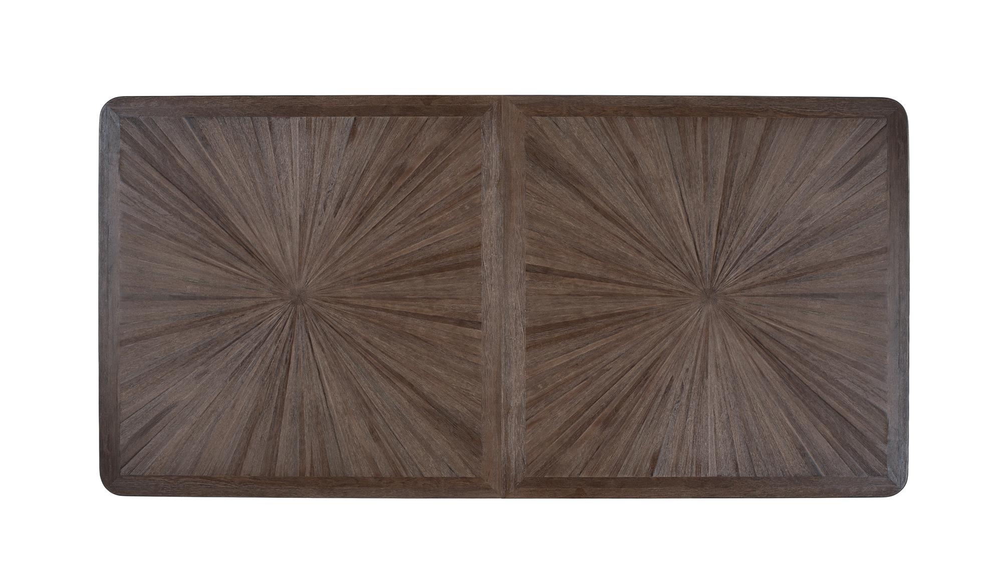 Ruokapöydässä on suorakaiteen muotoinen, kierrätetystä tiikistä valmistettu kansilevy. Kannen yksityiskohtainen mosaiikkikuviointi on säteittäin ja neljänneksiin sijoitettu, mikä luo symmetrisen visuaalisen vaikutelman. Jalka koostuu X-muotoon ristikkäin asettamista rautajaloista, jotka on maalattu mattamustaksi. Kestävän rakenteensa ansiosta tämä pöytä sopii erinomaisesti tilaviin ruokailuhuoneisiin tai avoimiin tiloihin, joissa halutaan yhdistää toiminnallisuus ja moderni estetiikka. JALKOJEN KORKEUS: 74 CM, KANSIJÄNNESTEN PAKSUUS: 3 CM.