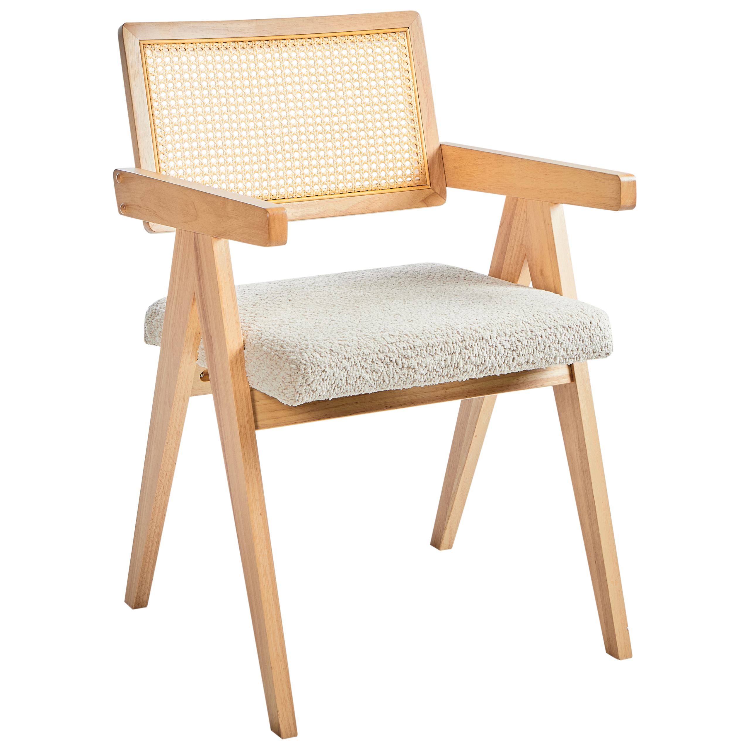 Retrotyylinen tuolisetti muhkeilla istuimilla. Lisää tilaan vintage-viehätystä tällä kahden ruokatuolin setillä, jossa on massiivinen kumipuurunko ja käsinojat lisämukavuutta varten. Bukleeverhoilu tekee istuimista pehmeät ja tyylikkäät, saaden tuolit sopimaan täydellisesti sekä ruokailutilaan että keittiöön. Retrovaikutelmansa ansiosta ne ovat ajaton lisä mihin tahansa kotiin.