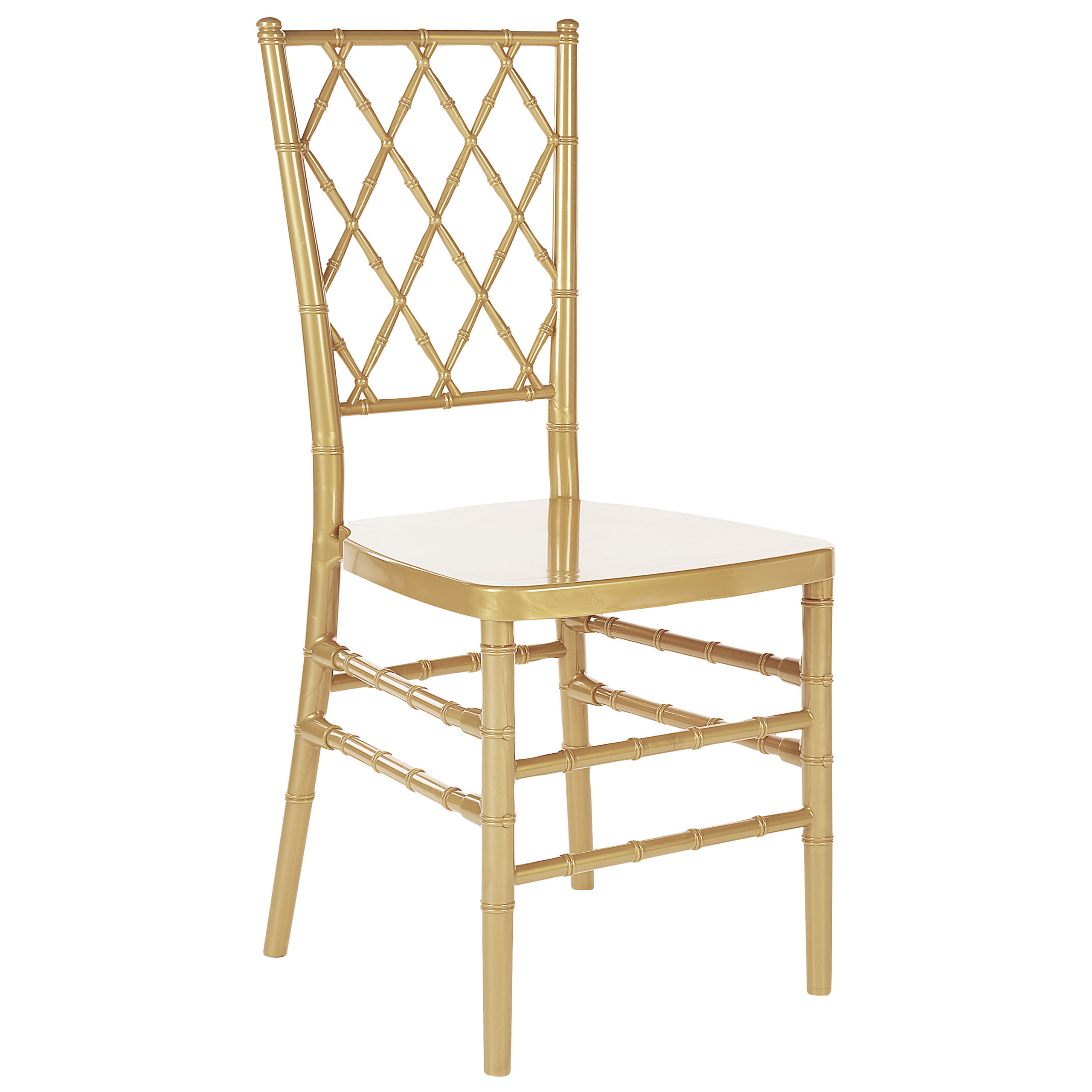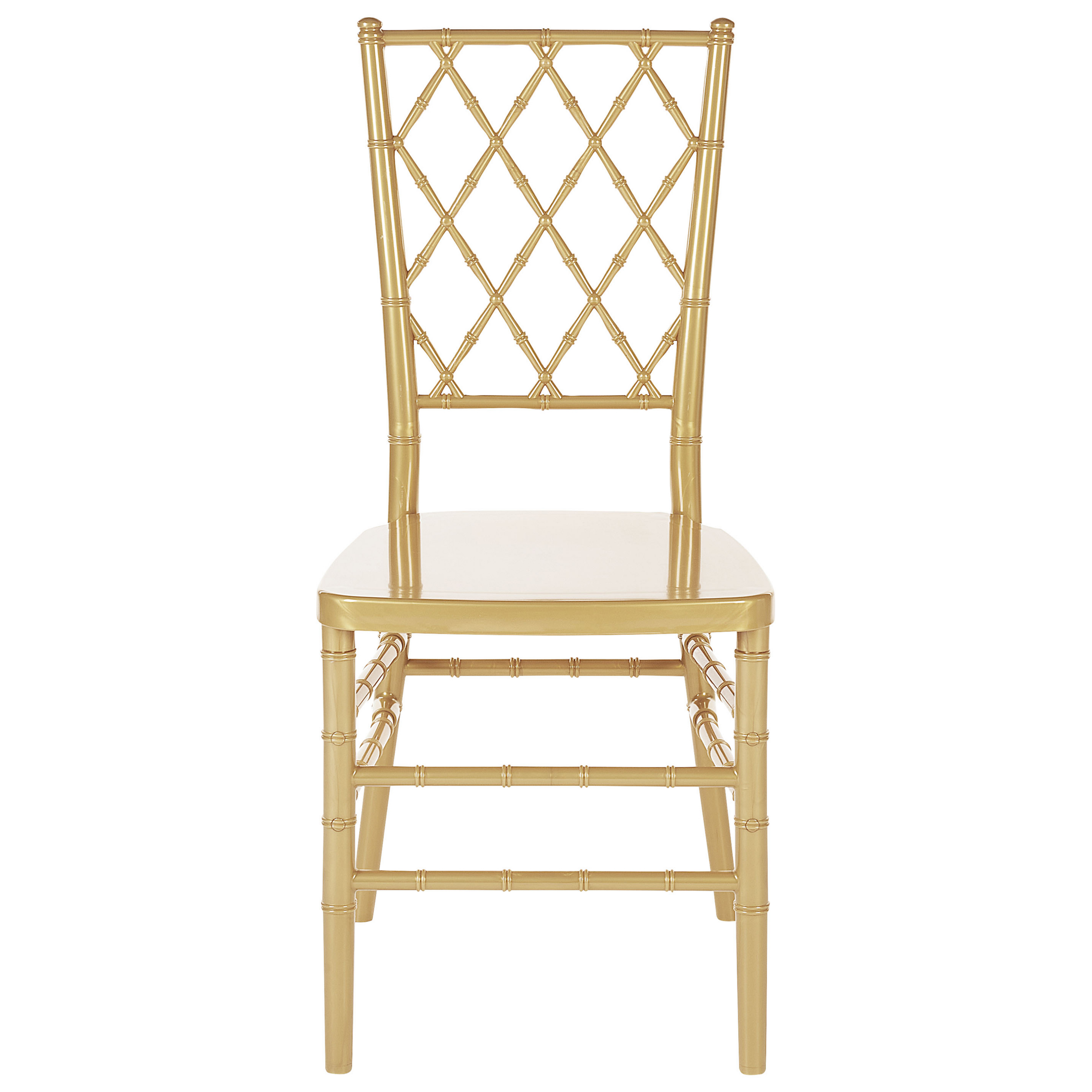 Tyylikäs pinottava muovituolisetti. Nämä ainutlaatuiset kullanväriset tuolit viehättävät trendikkäällä muotoilullaan. Kauniiden kaarteidensa sekä ohuiden jalkojensa ansiosta ne sulautuvat tilaan kuin tilaan viemättä kuitenkaan huomiota sen muusta sisustuksesta. Keveydestään huolimatta ne ovat sekä kestäviä että vakaita ja mukavia istua. Tuolit on valmistettu helposti puhdistettavasta polykarbonaatista. Pinottavan ominaisuutensa ansiosta niitä on helppo säilyttää silloin kun ne eivät ole käytössä.