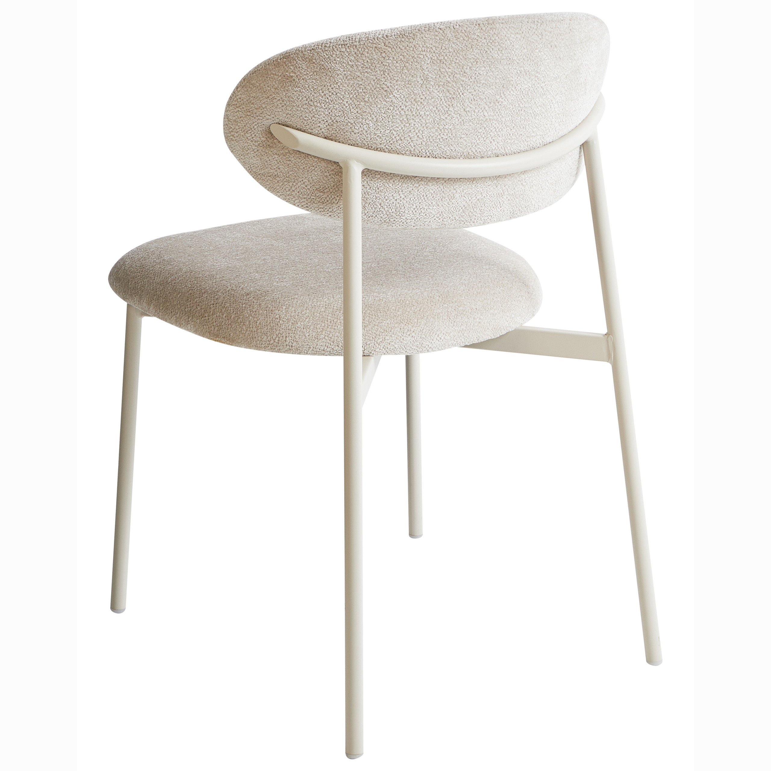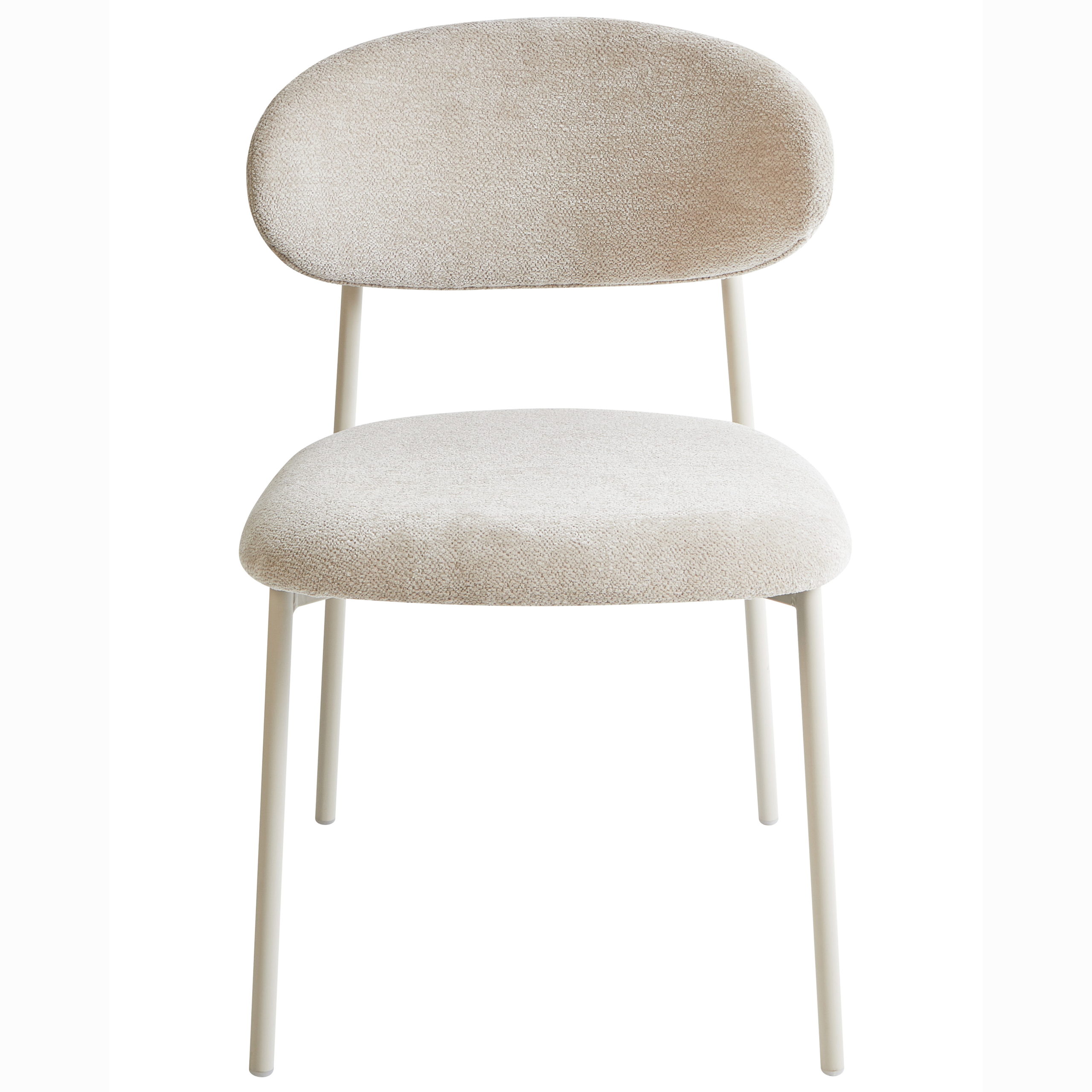 Minimalistinen käsinojaton tuolisetti. Tämä vaivattoman tyylikäs ja mukava kahden ruokatuolin setti yhdistää pehmeän, teksturoidun chenilleverhoilun ja virtaviivaiset rautarungot luoden modernin, yksivärisen ilmeen. Kaarevat selkänojat tarjoavat loistavan tuen, ja pehmustetut istuimet varmistavat mukavuuden ruokailun aikana. Tuolit ovat kevyet ja tukevat, minkä ansiosta niitä on helppo siirtää paikasta toiseen, ja jaloissa olevat muovitapit suojaavat lattioita naarmuilta. Ne ovat täydellinen yhdistelmä eleganssia ja käytännöllisyyttä jokaiseen ruokailutilaan.