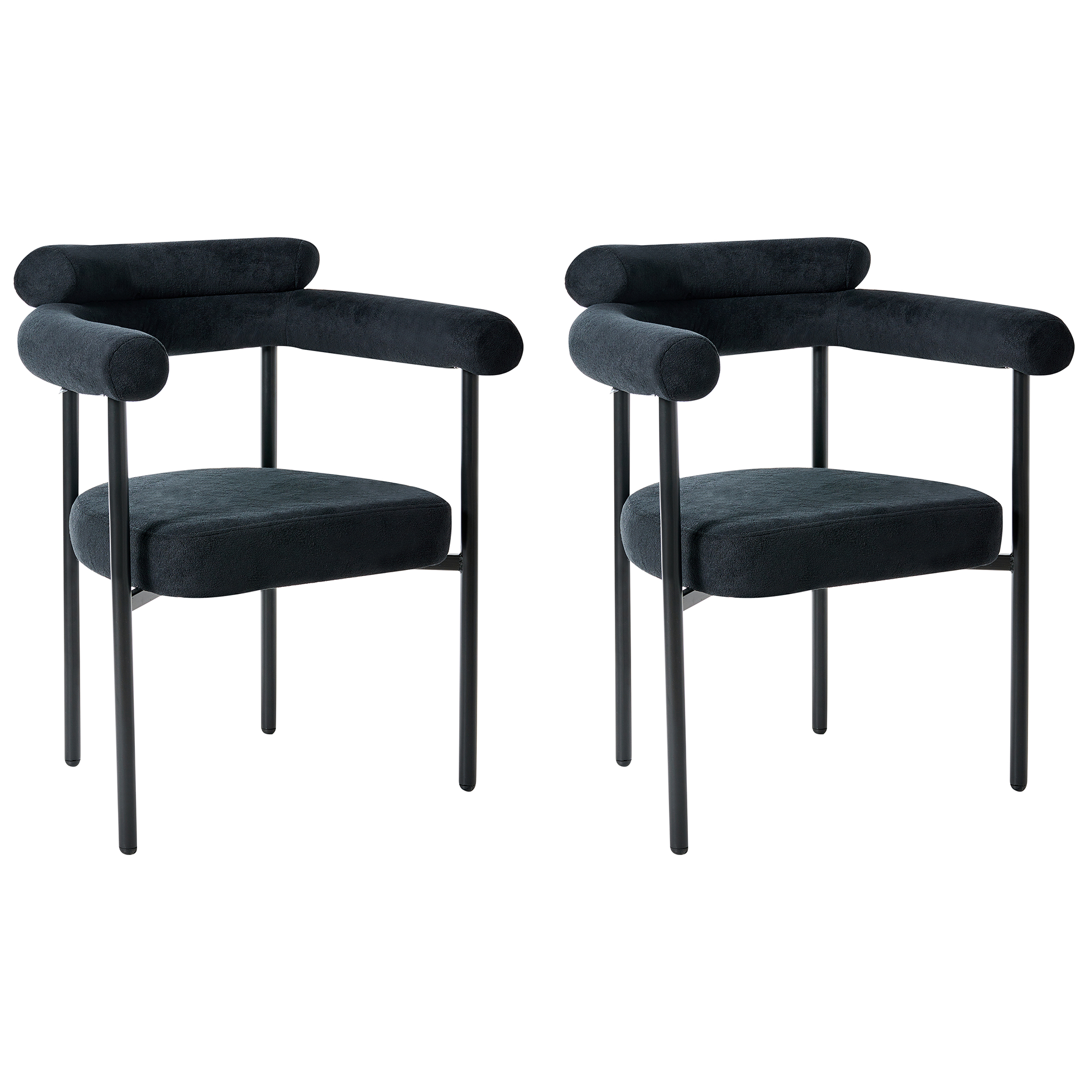 Moderni tuolisetti pyöristetyillä selkänojilla. Päivitä ruokailutilaa tällä tyylikkäällä kahden ruokatuolin setillä, joka on suunniteltu tarjoamaan mukavuutta pyöristetyillä selkänojillaan. Pehmeä kangasverhoilu takaa viihtyisän istumiskokemuksen, ja tukevat rautajalat takaavat vakauden sekä selkeälinjaisen ilmeen. Tuolit sopivat täydellisesti moderneihin sisustuksiin, tuoden niihin ripauksen eleganssia.