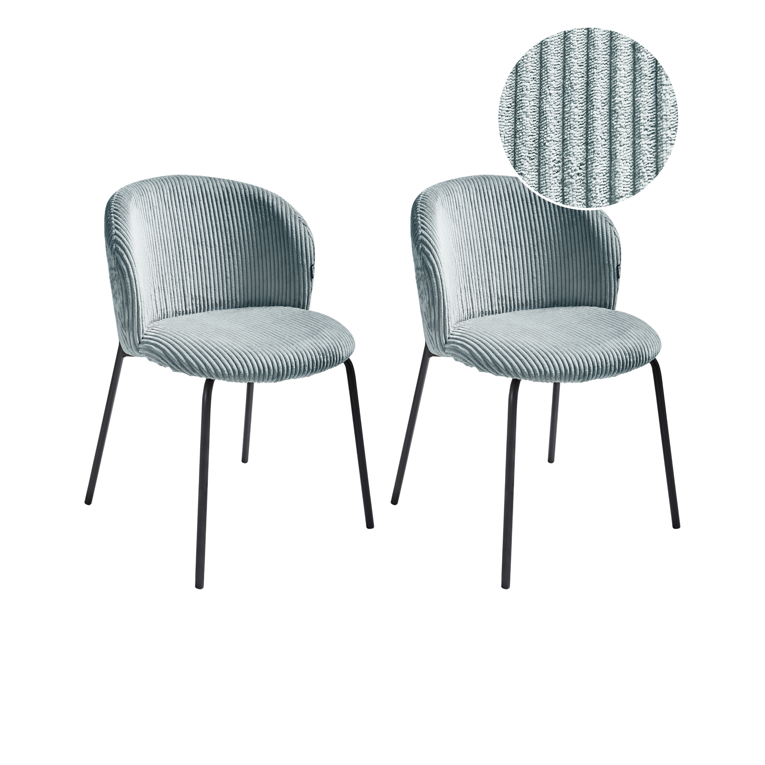 Retrotyylinen tuolisetti pyöristetyillä selkänojilla. Lisää ruokailutilaan retrohenkistä ilmettä tällä kahden ruokatuolin setillä, joka on suunniteltu mukavuutta ja tyyliä ajatellen. Kauniisti kaarevat, pyöristetyt selkänojat tarjoavat maksimaalisen mukavuuden, kun taas teksturoitu vakosamettiverhoilu takaa miellyttävän istumakokemuksen. Elegantit mustat rautajalat luovat tyylikään kontrastin vaaleansinisen värin kanssa. Tuolit sopivat täydellisesti rennon mutta hienostuneen tunnelman luomiseen missä tahansa keittiössä tai ruokailutilassa.