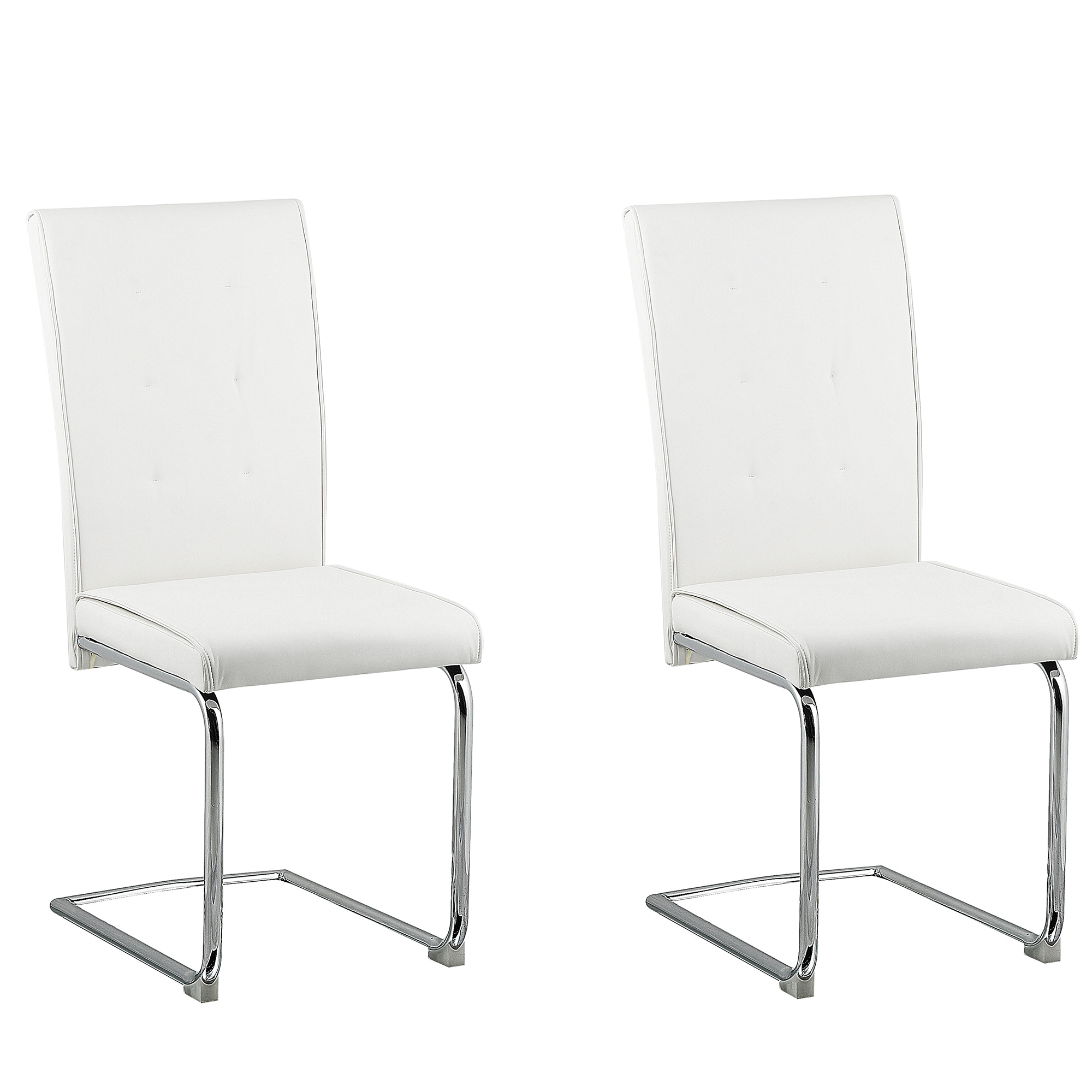 Modernit verhoillut cantilever-tuolit. Tämä 2 tyylikästä tuolia sopii täydellisesti sekä moderniin että retro-sisustukseen. Korkealaatuisesta keinonahasta valmistettu päällinen on miellyttävän tuntuinen ja kromattu metallirakenne on todella näyttävä. Tuolien muotoilu tekee niistä erinomaisen valinnan sekä ruokasaliin että olohuoneeseen. Jalkojen suojuksien ansiosta tuolit eivät vaurioita lattiaa.