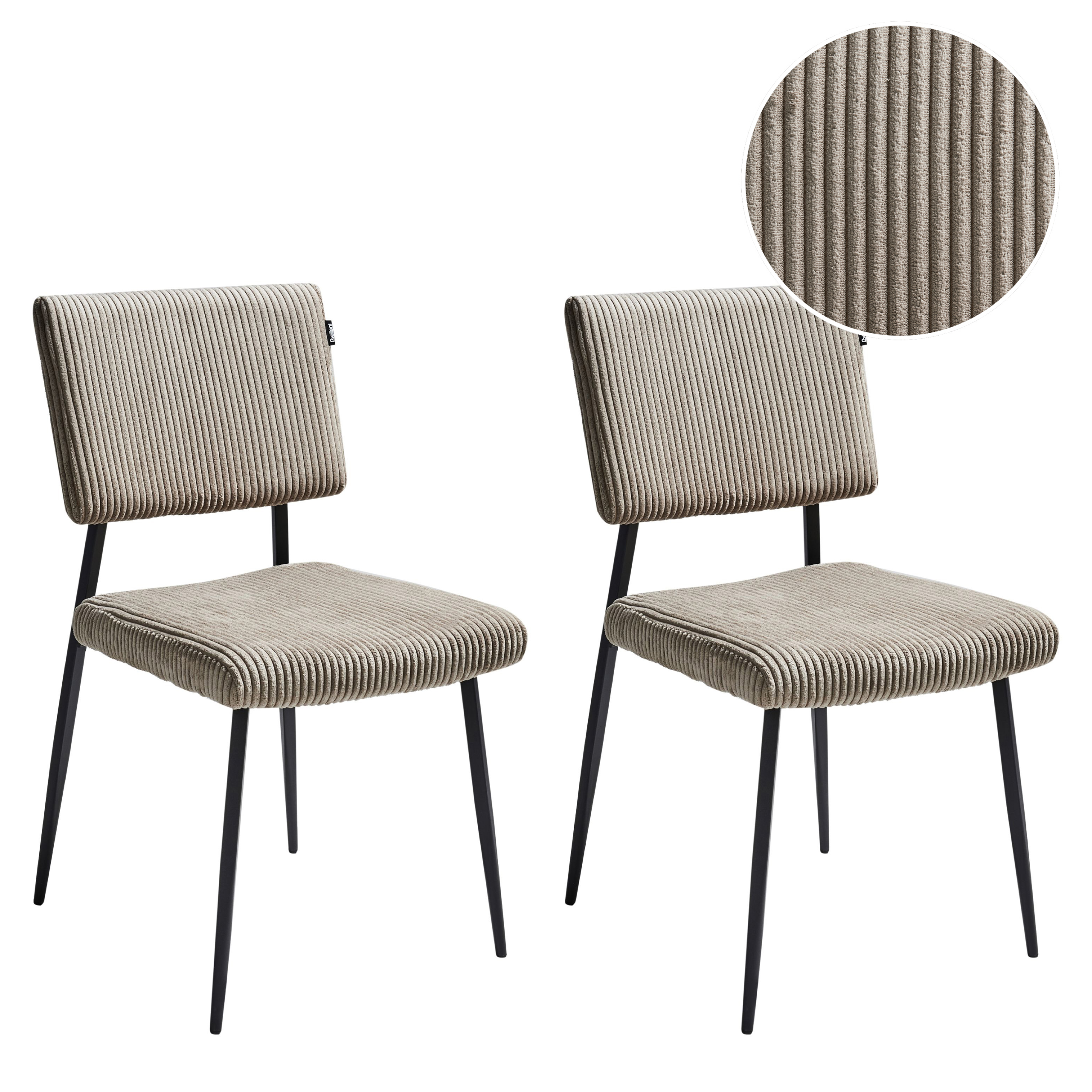 Retrotyylinen tuolisetti ruokailutilaan. Tämä kahden ruokatuolin setti on suunniteltu täydentämään erilaisia sisustustyylejä. Pehmeä ruskeanharmaa vakosamettiverhoilu erottuvalla uurretulla tekstuurilla takaa miellyttävän istumakokemuksen. Kaarevat istuinosat sekä tukevat rautajalat yhdistävät mukavuuden ja kestävyyden tasapainoisesti, tehden tuoleista ajattoman valinnan. Ne tuovat tilaan vaivatonta tyylikkyyttä, olipa ne yhdistetty puiseen tai moderniin ruokapöytään.