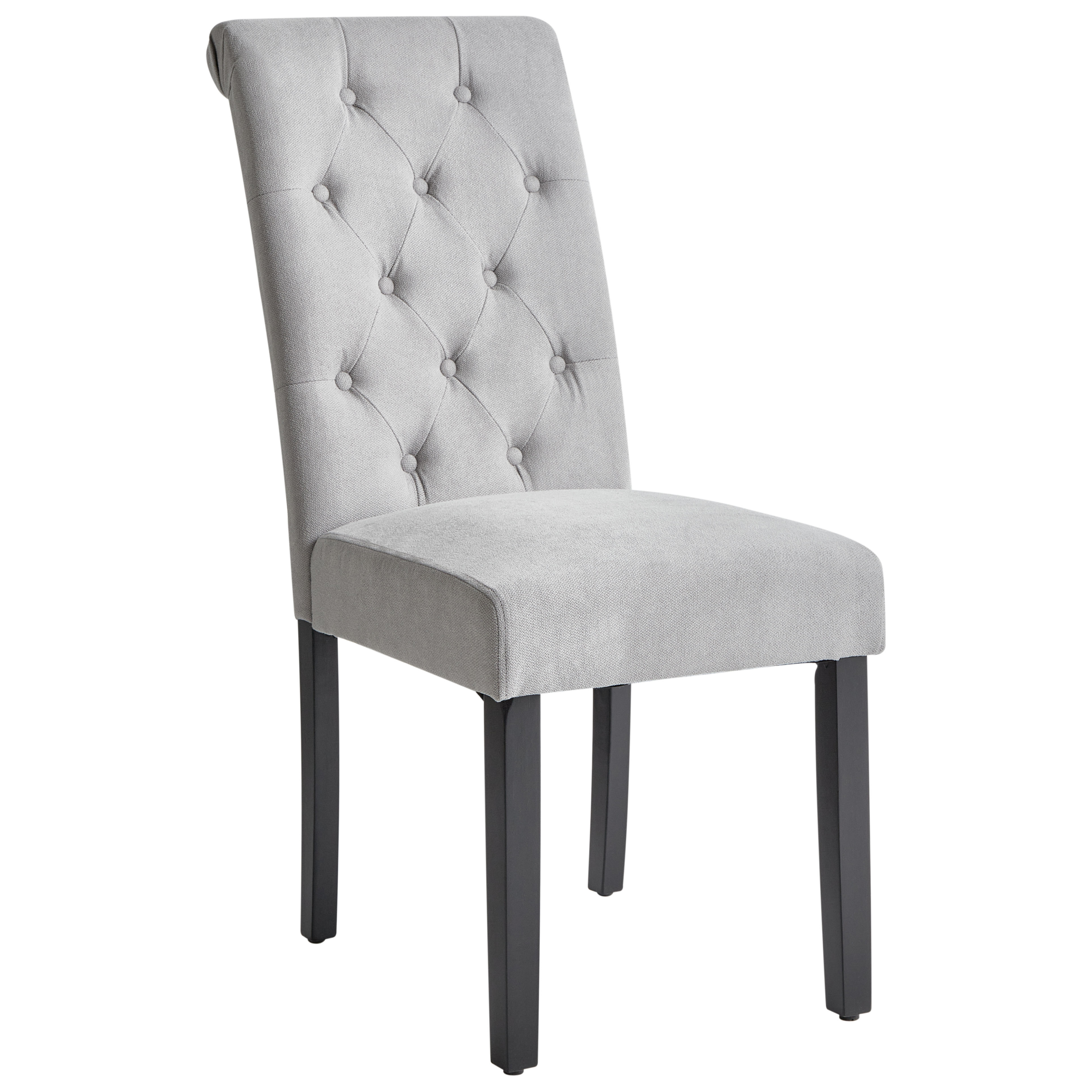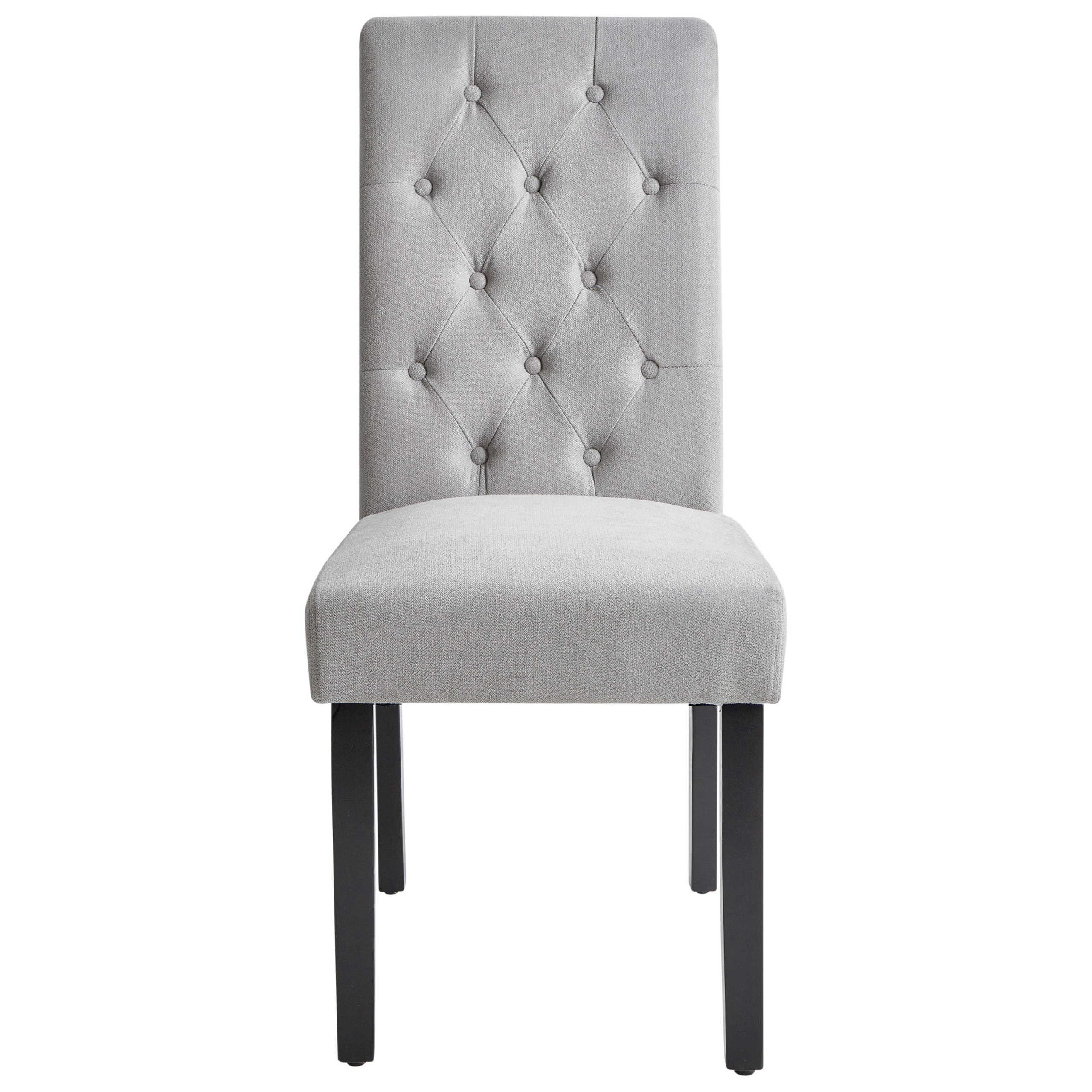 Glamour-tyyliset kangastuolit napitetulla selkänojalla. Luo ruokapöytää tai pukeutumispöytää ympäröivään tilaan ylellinen, kuninkaallinen tunnelma tällä ainutlaatuisella kahden tuolin setillä. Verhoilun tyylikäs väri sekä selkänojan koristeellinen timanttitikkaus ja nappituftaus tekevät ruokatuoleista helmiä, jotka sulautuvat nykyaikaisiin, skandinaavisiin tai glamour-sisustuksiin. Kunkin tuolin runko on verhoiltu pehmeällä mutta kestävällä polyesterikankaalla, jota täydentävät tukevat mustat mäntyjalat. Nauti pehmustetun istuimen ja selkänojan tarjoaman mukavuuden sekä kauniin ulkonäön yhdistelmästä modernin elegantin tuolisetin avulla.