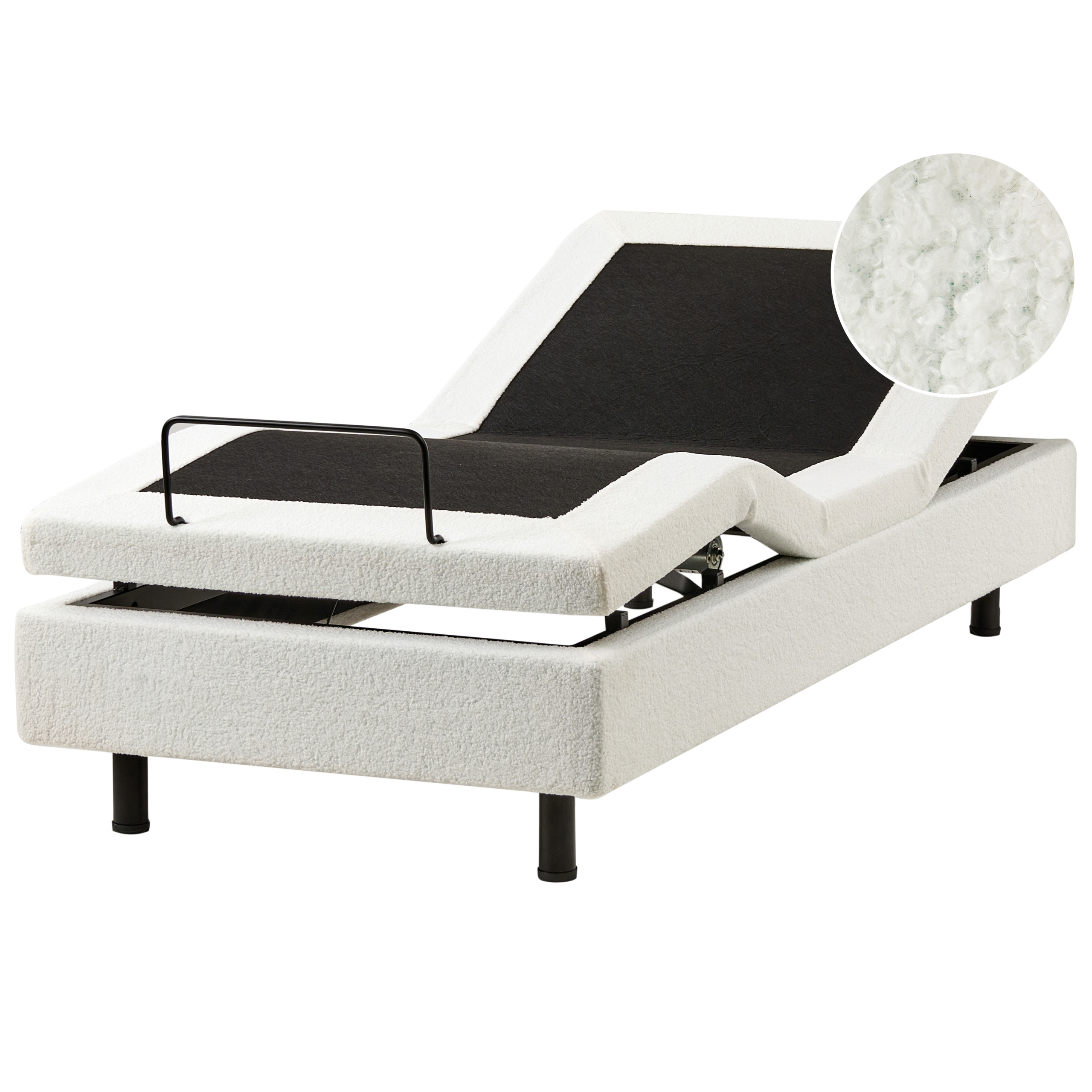 Lisätiedot: Säädettävän rungon parhaan suorituskyvyn saavuttamiseksi suosittelemme käyttämään vaahtomuovipatjaa, joka mukautuu helposti liikkuvaan runkoon. Patjan kannattaa olla enintään 30 cm paksu, jotta se on tarpeeksi joustava säädettäväksi sängyn rungon mukaisesti. Säädettävien sänkyjen kanssa ei suositella käytettävän joustinpatjoja, sillä ne eivät taivu rungon mukana ja saatat vahingoittaa patjaa., Kuvassa näkyvän patjan korkeus on 20 cm, suosittelemme samankokoisen patjan käyttöä.