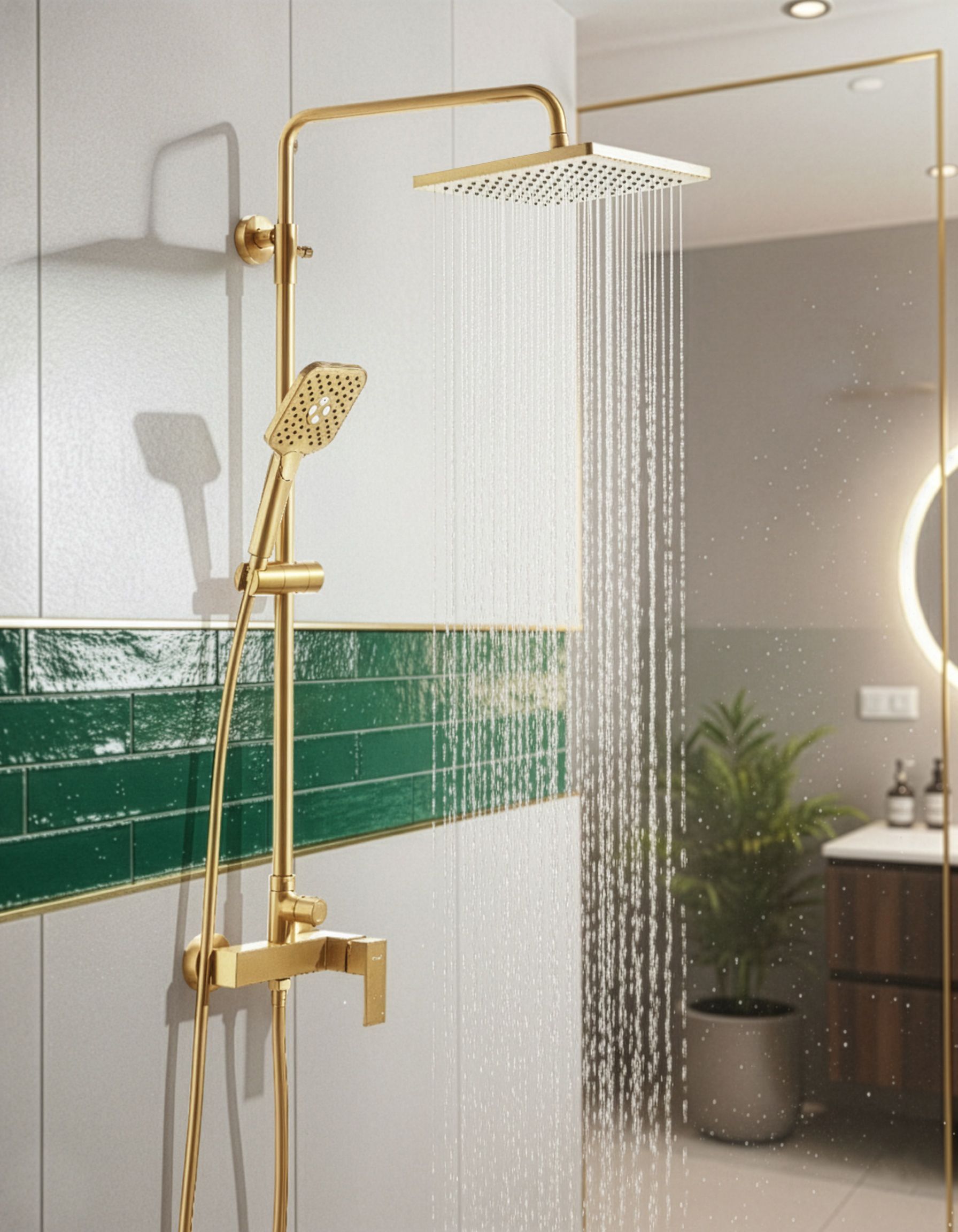 Korkeussäädettävä sadesuihku käsisuihkulla. Päivitä kylpyhuone tällä sadesuihkusetillä, jonka puhdas muotoilu täydentää vaivattomasti monenlaisia sisustuksia. Korkeussäädettävä suihkukisko mahdollistaa räätälöinnin tilan ja tarpeen mukaan optimaalisen mukavuuden ja saumattoman ulkonäön saavuttamiseksi. Kestävä messinkirunko takaa pitkäikäisen laadun. Virtauksen voimakkuuden ja lämpötilan säätely sekä sadesuihkun ja käsisuihkun välinen vaihto on nopeaa ja helppoa, jolloin suihkusta voi nauttia huoletta.