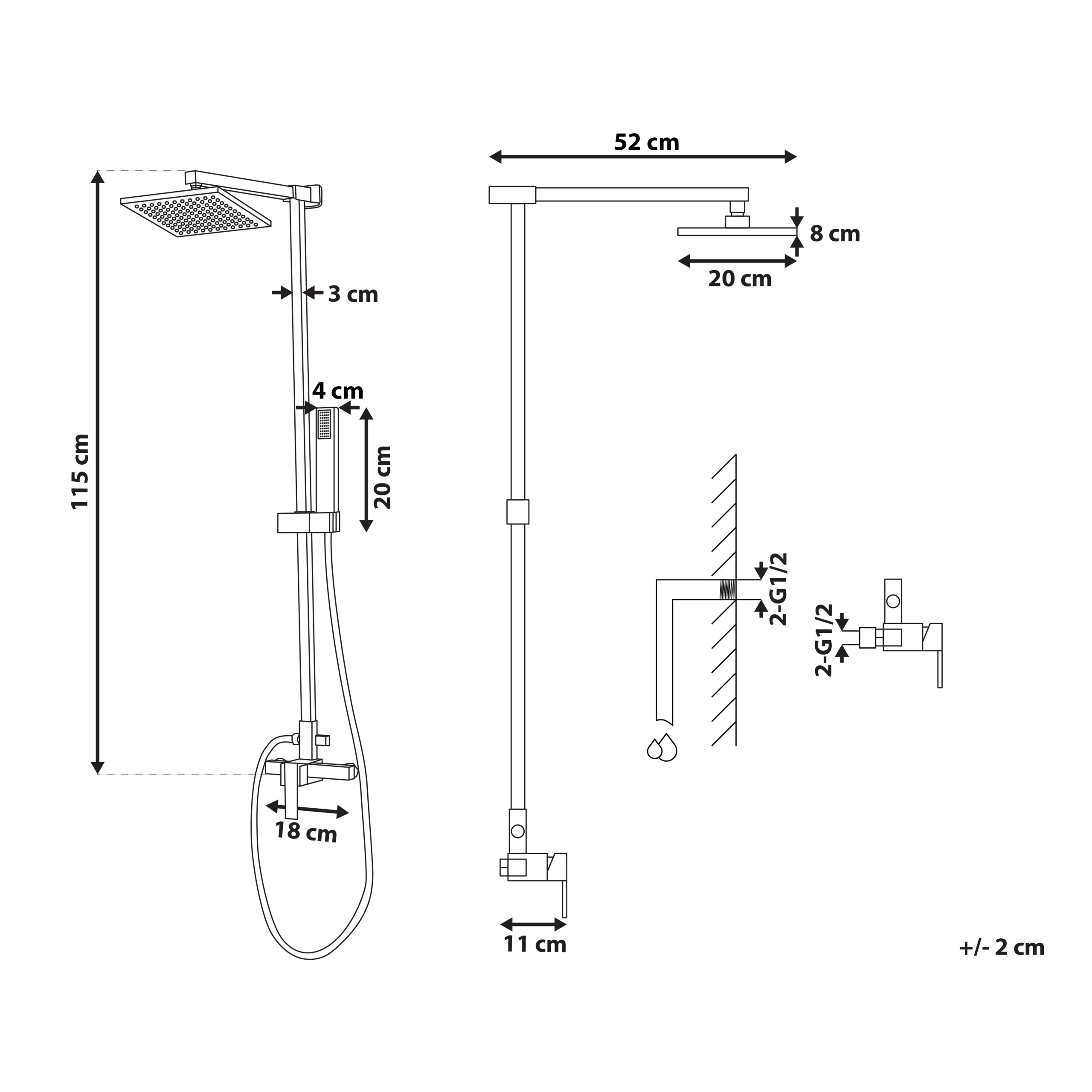 Ominaisuudet: Käytännöllinen käsisuihku, Yhteensopiva standardin G1/2-liitäntätyyppisen letkun kanssa, Käsisuihkutelineen korkeus säädettävissä, Integroitu vaihtoventtiili helpottaa vaihtamista sadesuihkun, hanan ja suihkupään välillä, Säädettävä sadesuihkun kulma, Moderni muotoilu, CE-sertifikaatti, Pitkäikäinen
