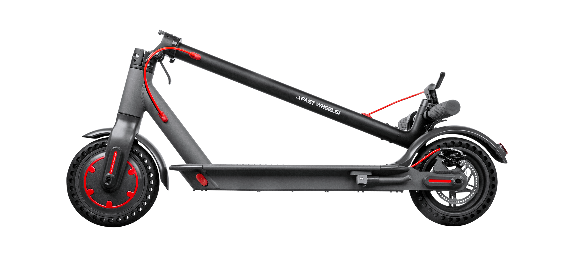 Fast Wheels PRO -potkulauta on uskomattoman helppo säilyttää ja kuljettaa. Taittuvan muotoilunsa ansiosta se vie vain vähän tilaa. Siinä on myös tukijalka, jonka avulla voit kätevästi pysäköidä potkulaudan minne haluat.