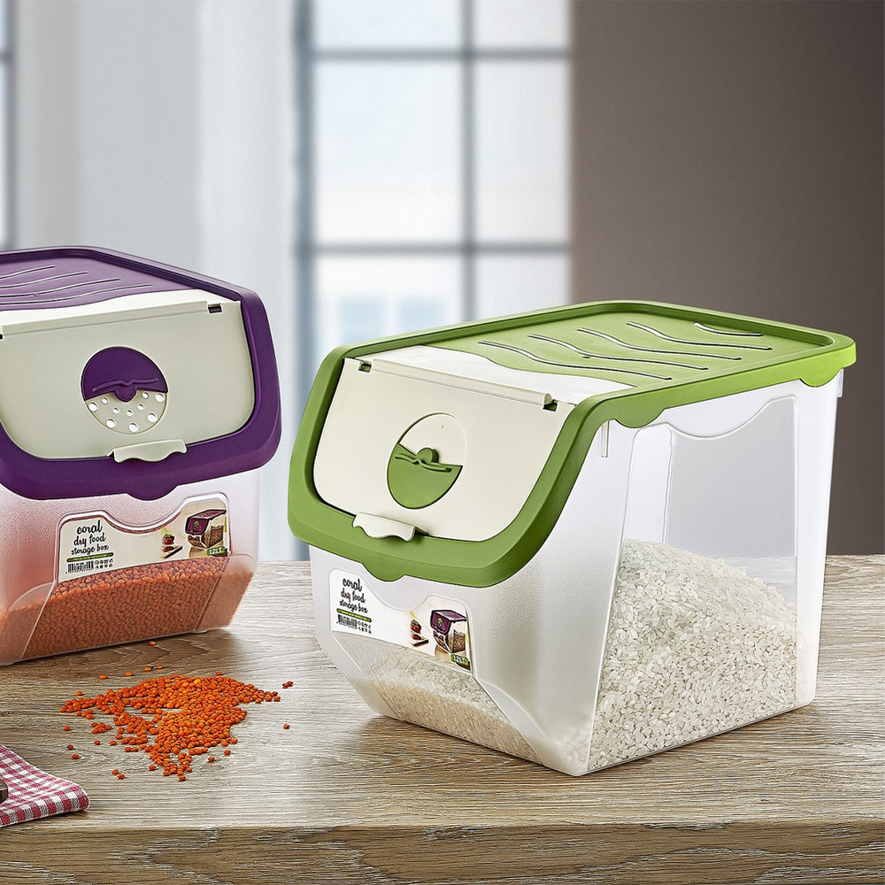 Hedelmä- ja vihannessäiliö, jonka mitat ovat 30 x 23,5 x 23,5 cm ja tilavuus 12 litraa. Säiliö on valmistettu korkealaatuisesta läpinäkyvästä muovista ja siinä on vihreä kansi. Siinä on säädettävä ilmanvaihto, joka auttaa pitämään hedelmät ja vihannekset tuoreina pidempään. Sitä voidaan käyttää myös lemmikkieläinten ruoan säilytykseen. Kätevä käyttää klipsillä avattavan kannen ansiosta. Voit helposti poistaa ja lisätä halutut vihannekset. Säiliötä voidaan säilyttää pakastimessa. Se on helppo puhdistaa, koska se on astianpesukoneen kestävä. Useita säilytysrasioita ostettaessa ne on helppo säilyttää; niiden pinottava muotoilu mahdollistaa helpon pinoamisen. Alkuperäinen tuote tšekkiläiseltä Orion-merkiltä. Valmistettu eurooppalaisten standardien mukaisesti.
