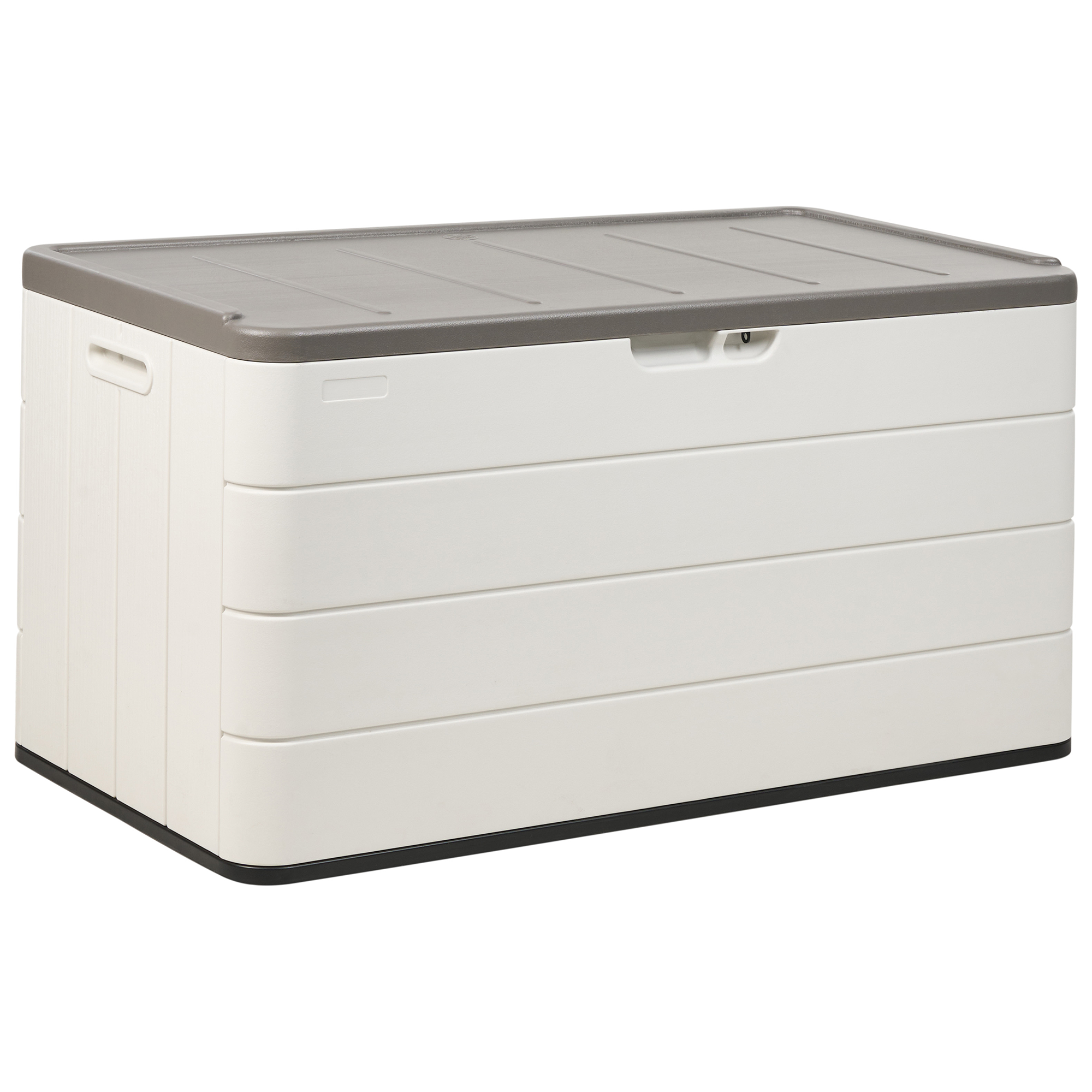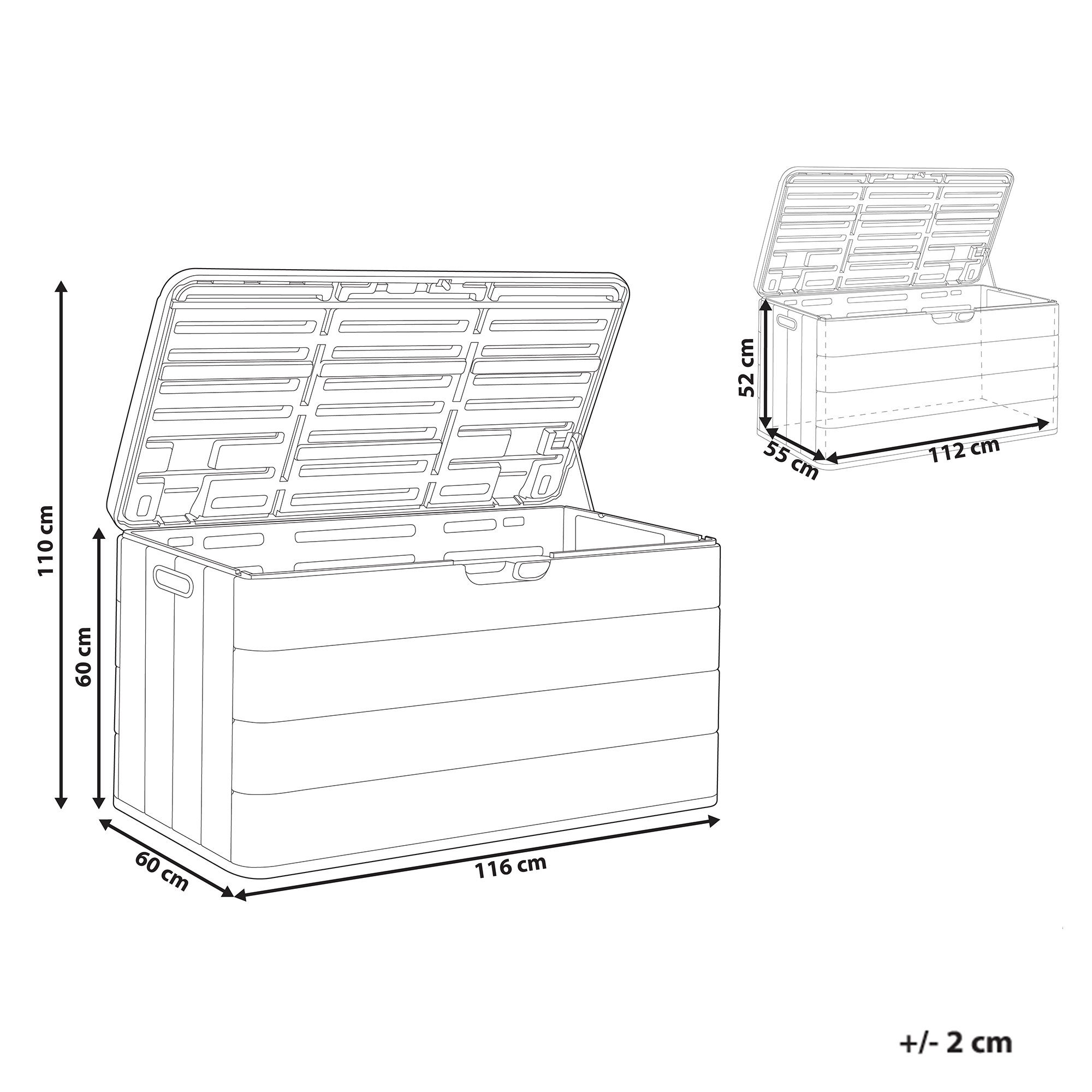 Muovinen puutarhan pehmustelaatikko. Pidä puutarhan tarvikkeet siistissä järjestyksessä tällä tilavalla säilytyslaatikolla, jonka kahvat helpottavat siirtelyä. Se sopii erinomaisesti tyynyjen, peittojen ja muiden pehmeiden tekstiilien säilyttämiseen tarjoten niille turvallisen ja kuivan paikan. Säilytyslaatikko on valmistettu vedenpitävästä synteettisestä materiaalista, joka kestää sekä tahroja että tuulta. Moderni muotoilu saa sen sulautumaan vaivattomasti monenlaisiin ulkotiloihin, tuoden niihin tyylikkään mutta käytännöllisen lisän.