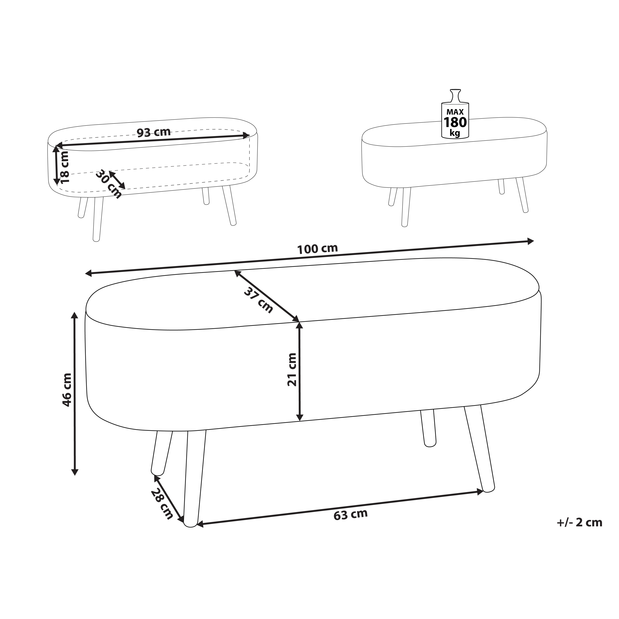Istuinala: 100x37 cm