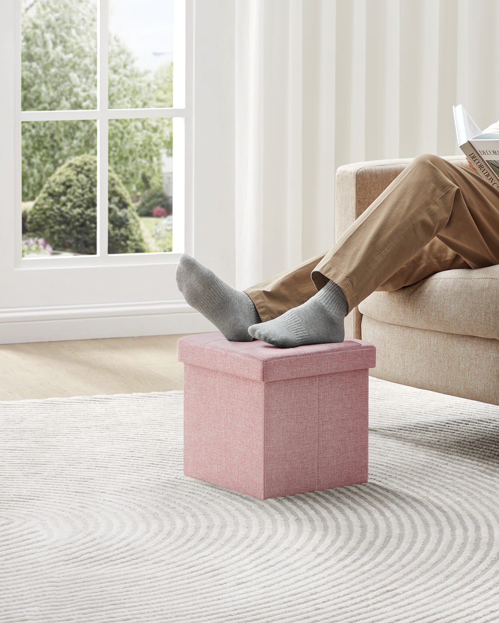 OSKARin vaaleanpunainen säilytysrahi on monikäyttöinen ja tilaa säästävä huonekalu, joka sopii täydellisesti eteiseen, käytävään, makuuhuoneeseen tai lastenhuoneeseen. Sen neliönmuotoinen rakenne ja pehmeä verhoilu tekevät siitä mukavan istuimen, jalkarahin tai säilytyspaikan pienille tavaroille.