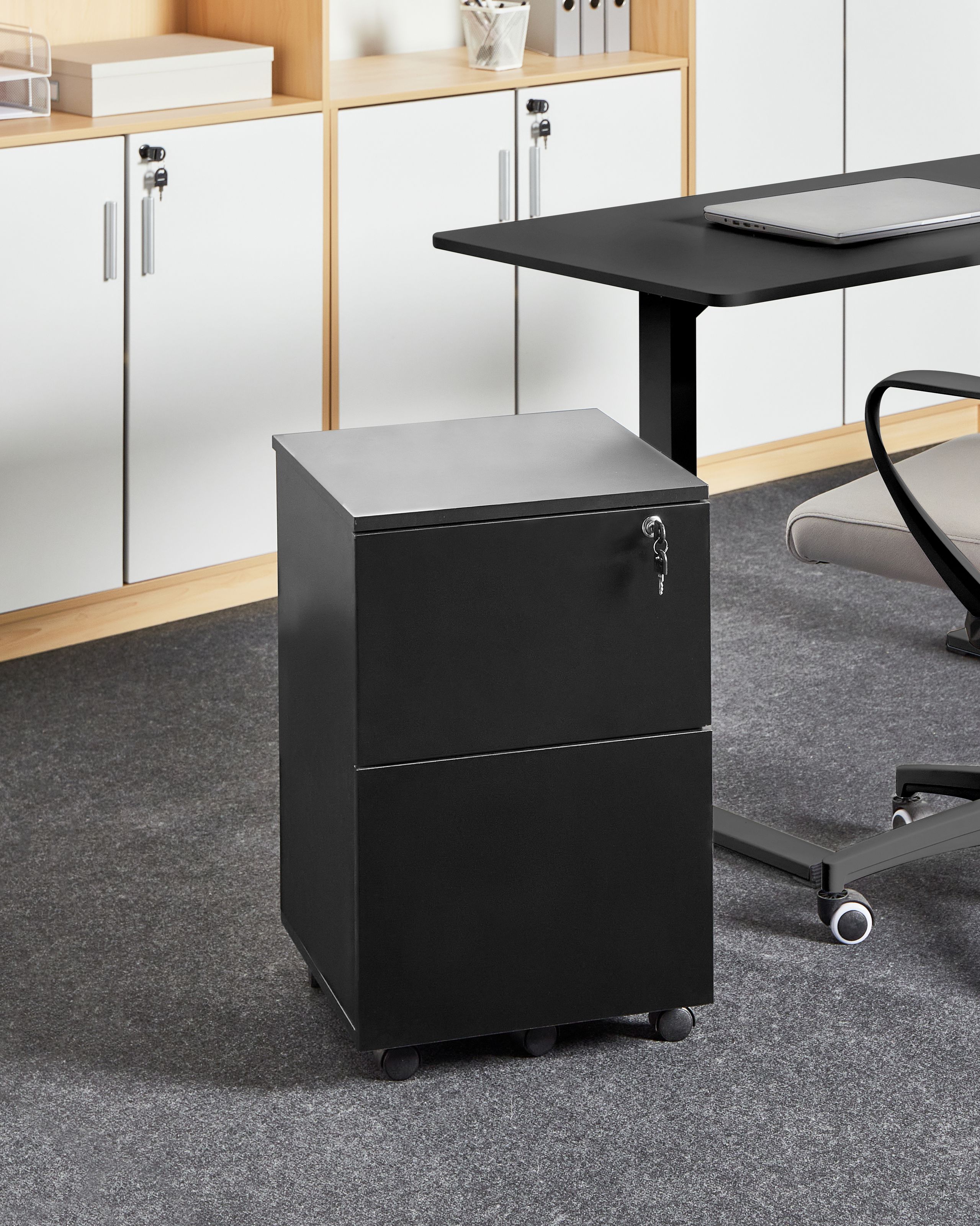 Lukittava säilytyslaatikosto. Nauti toimivasta eleganssista missä tahansa tällä käytännöllisellä laatikostolla, joka sopii erinomaisesti sekä kotitoimistoon että olohuoneeseen. Klassisen musta viimeistely tuo tilaan skandinaavista hienostuneisuutta. Kaksi tilavaa laatikkoa, joista toinen on lukittavissa, tarjoavat paikan asiakirjoille tai muille toimistotarvikkeille. Sulavasti rullaavat pyörät mahdollistavat helpon siirtelyn tarpeen mukaan. Laatikosto tuo työtilaan saumattoman yhdistelmän tyyliä ja mukavuutta.